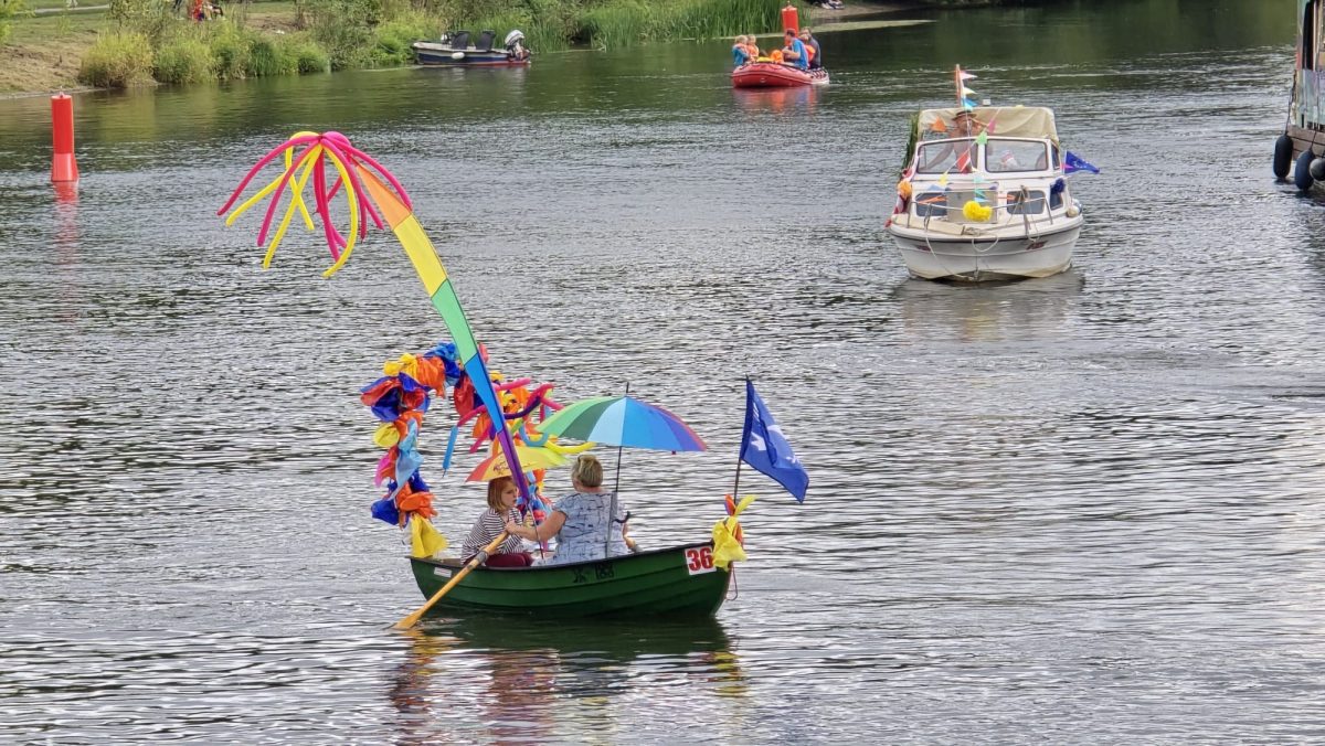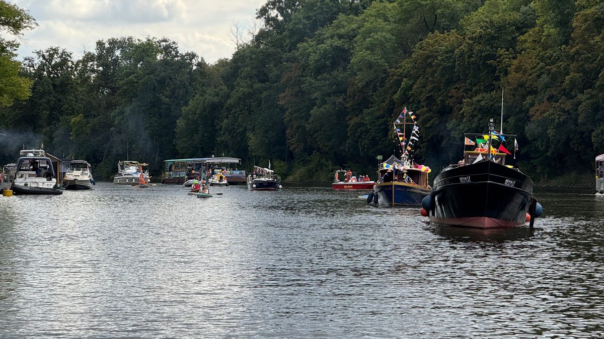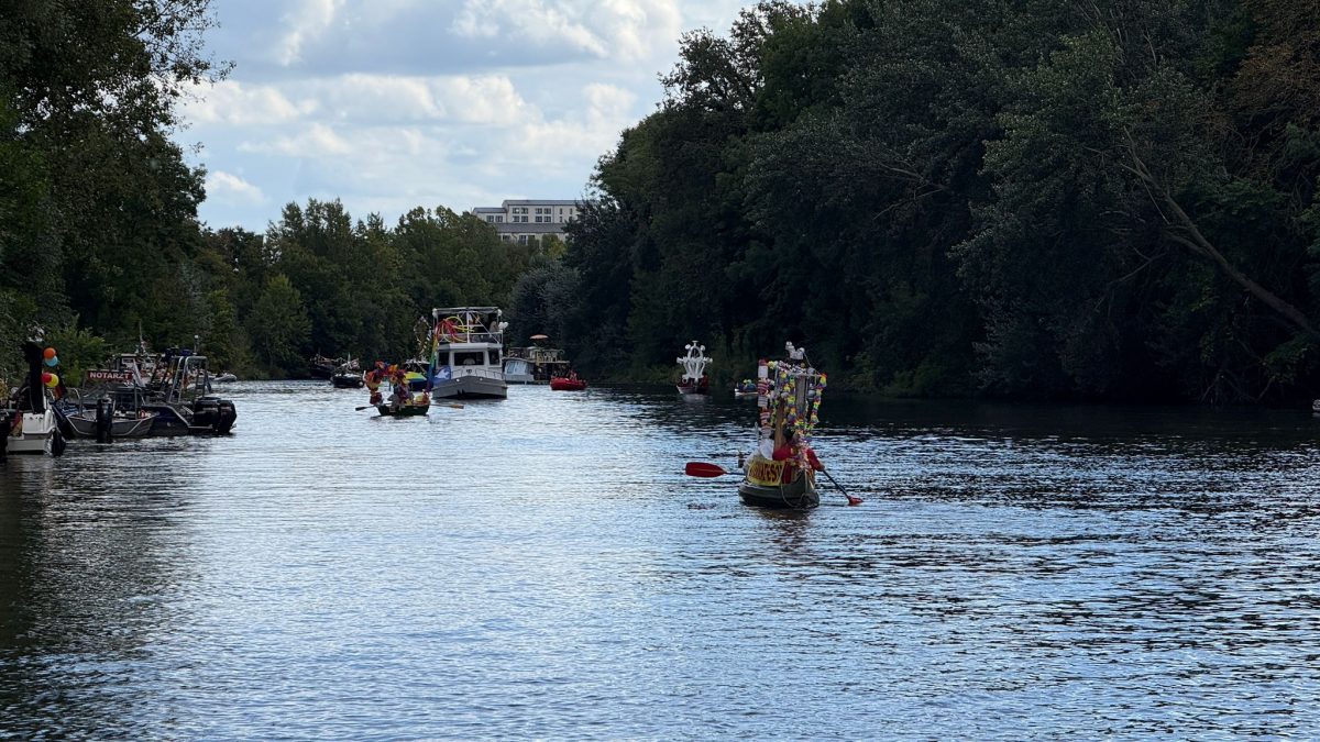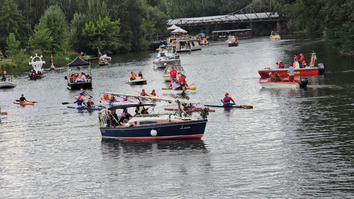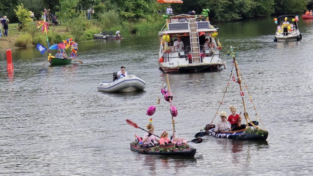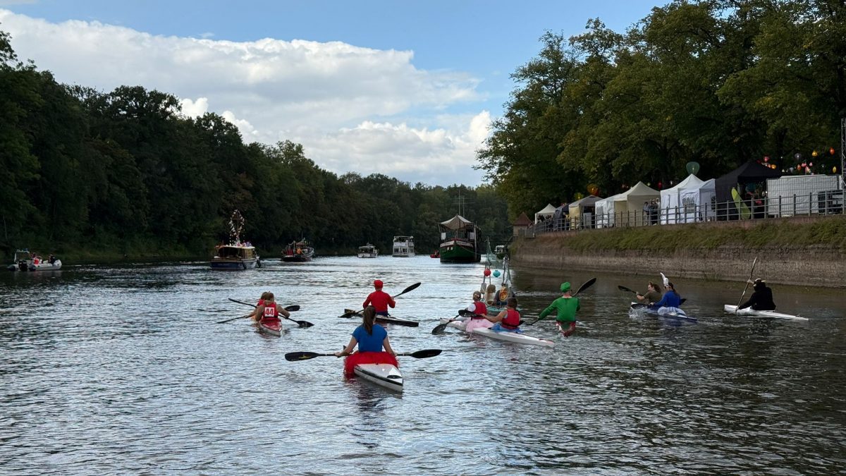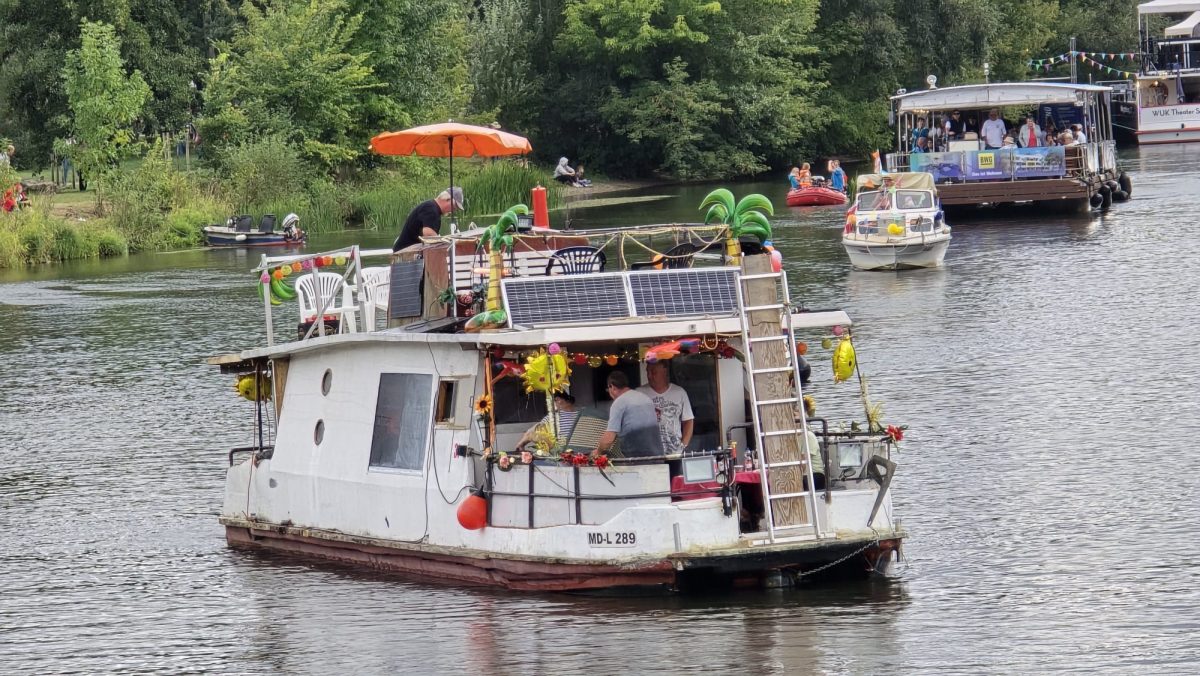 Am Abend wurde es dann schwimmend spannend: 3.000 quietschgelbe Plastikenten stürzten sich bei leichtem Strom in die Saale – beim traditionellen Rotary-Entenrennen. Nicht alle kamen schnell voran, aber für Stimmung sorgte das bunte Gewusel allemal.