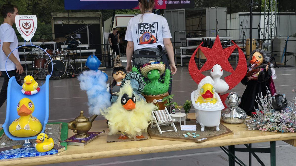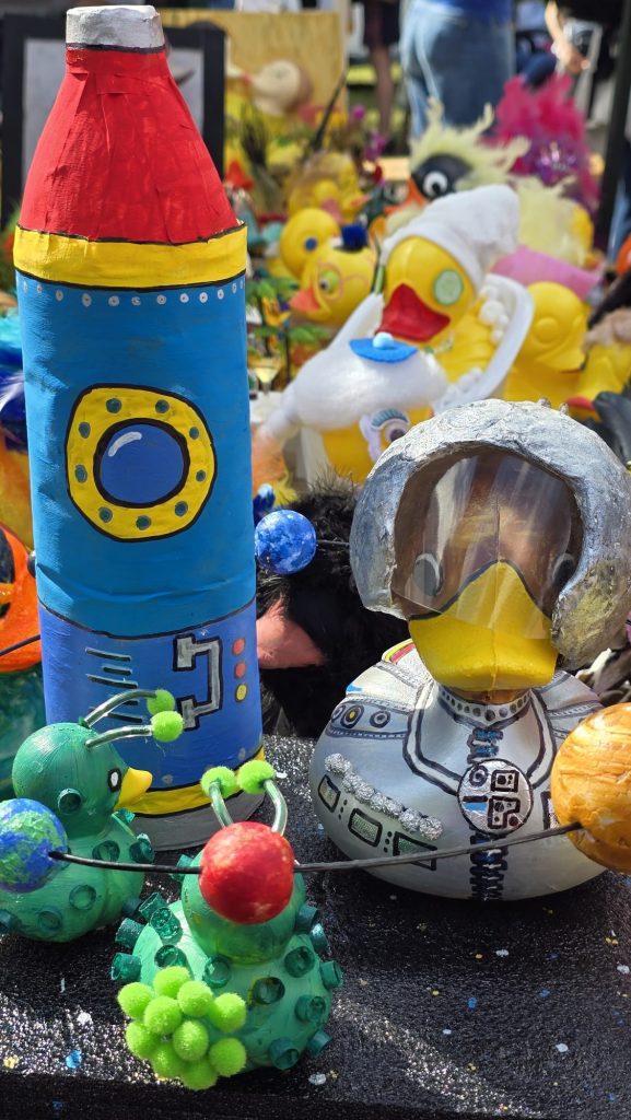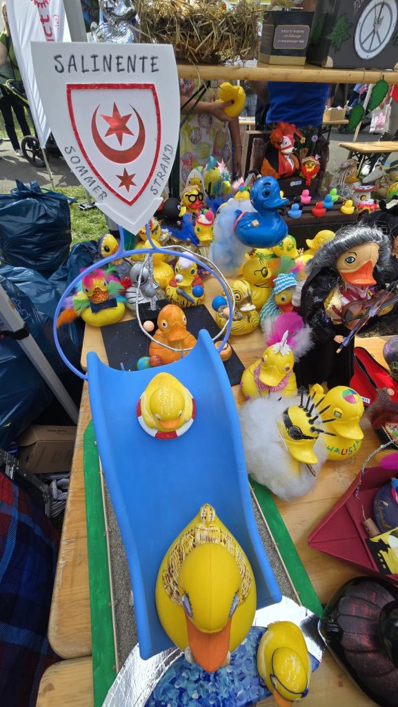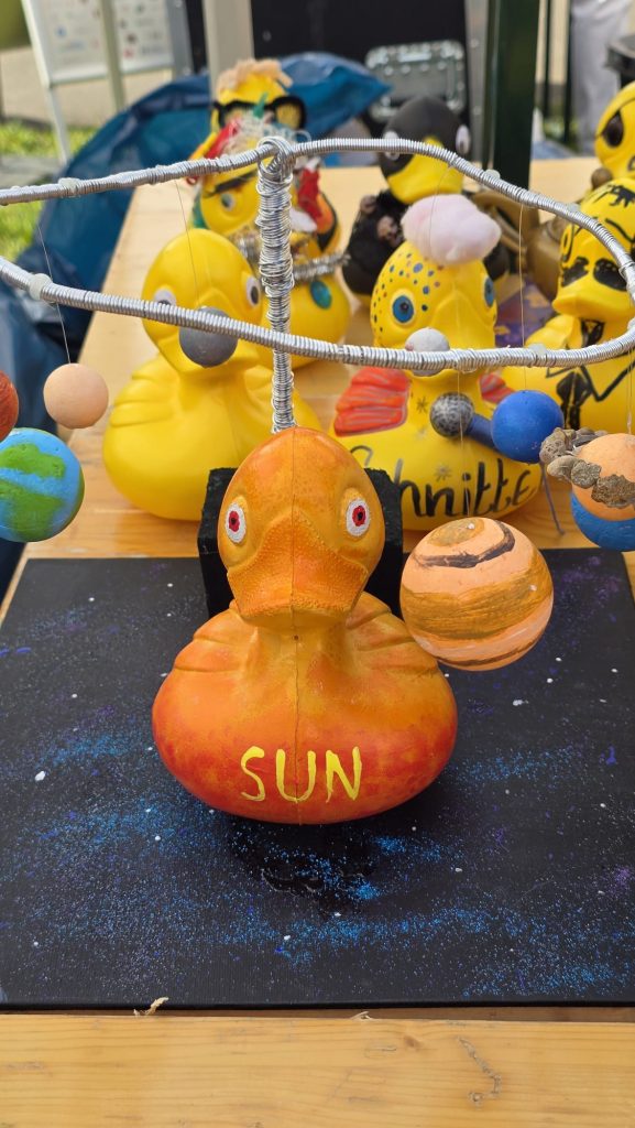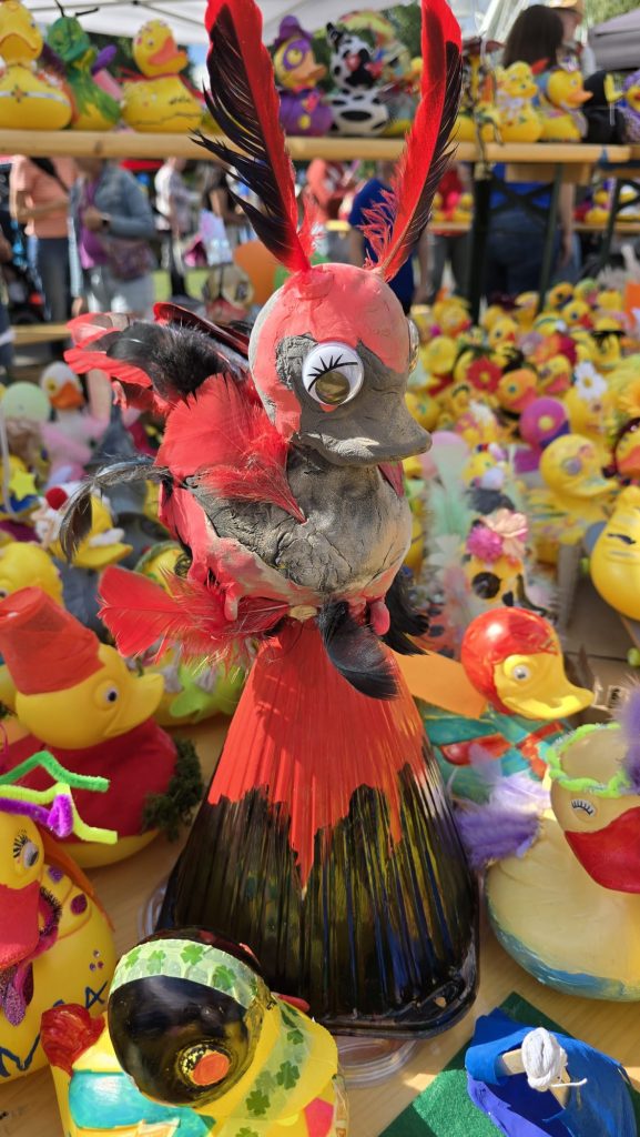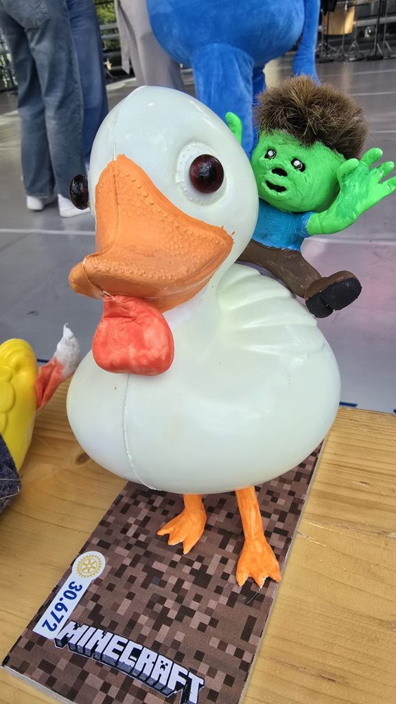 Am Nachmittag standen dann eher die ruhigen, kreativen und kuriosen Seiten des Festes im Fokus. Enten in ihrer schönsten Form wurden beim Entenschönheitswettbewerb bewertet – darunter eine detailverliebte „ZukunftszEntrum“-Ente, die sich bei den Erwachsenen den Sieg sicherte. Auch bei den Kinderenten wurde fleißig bewertet: Die Jury aus Kindern hatte es bei Enten im Stil von Minecraft, Superman und der Band Die Mau nicht leicht.