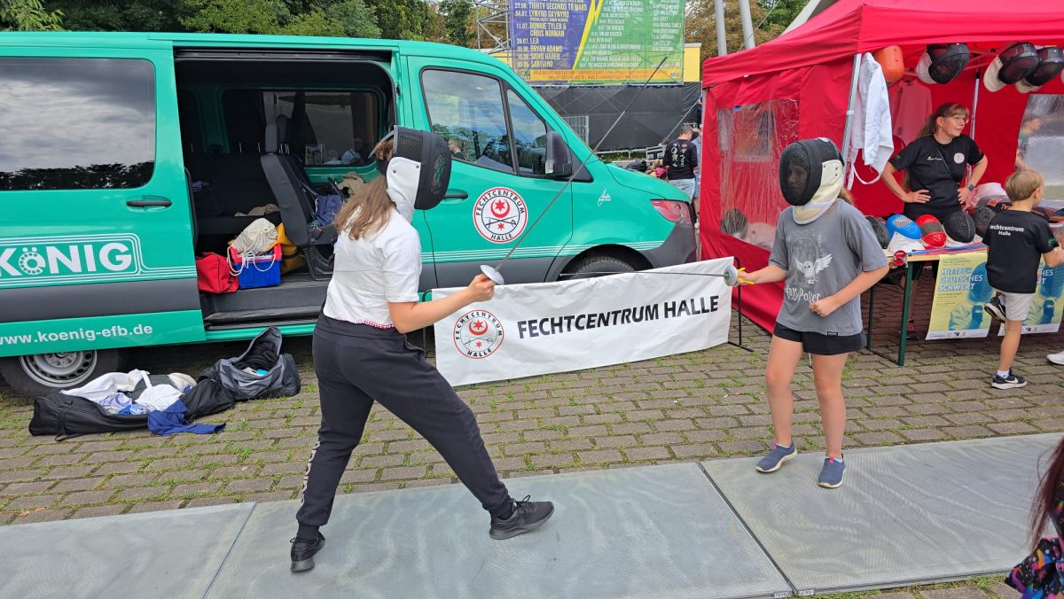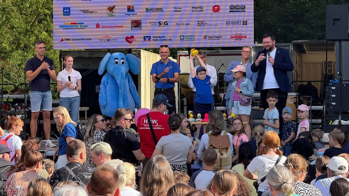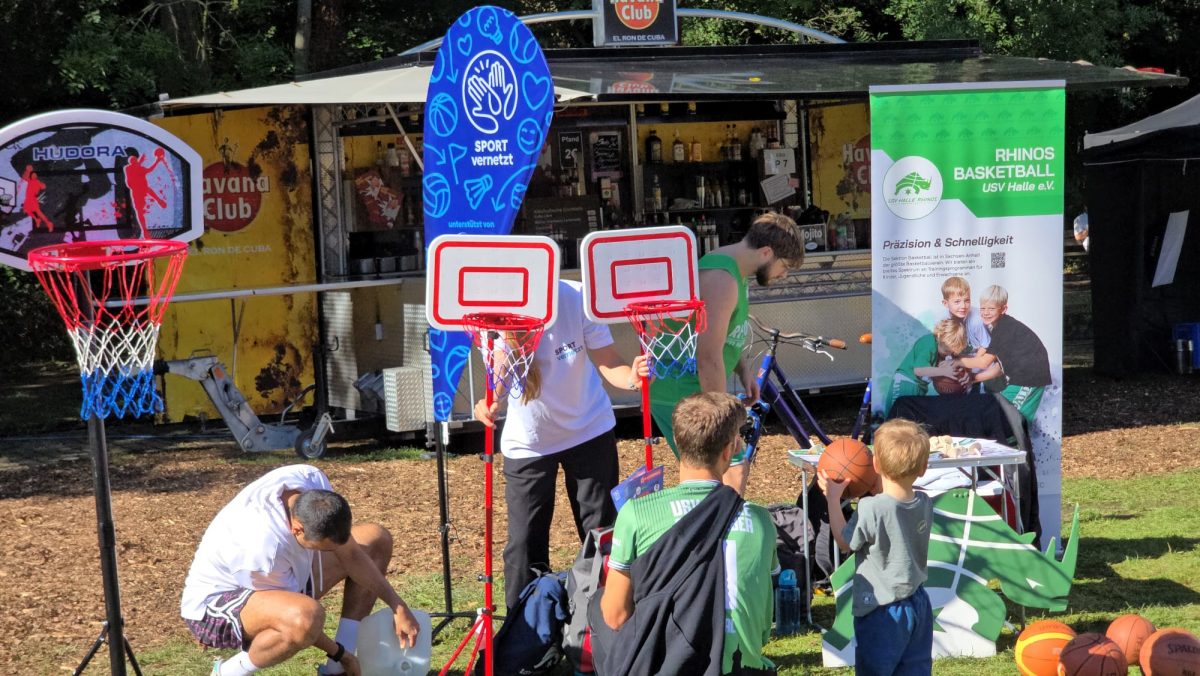 Anschließend verwandelte sich die Fläche von der Freilichtbühne in eine große Sportarena unter freiem Himmel. Halles Sportvereine zeigten, was die Saalestadt zu bieten hat – und das ist einiges: Ob Floorball mit dem USV, eine Partie Golf, ein Tor mit den HFC-Fußballern, ein Schlagabtausch mit den ISK-Boxern oder ein Korbleger mit den Bundesliga-Basketballerinnen der Wildcats – für Groß und Klein war Mitmachen ausdrücklich erwünscht. Auf der Sportwiese ging es dabei nicht nur um Leistung, sondern um Leidenschaft, Bewegung und Gemeinschaft.
