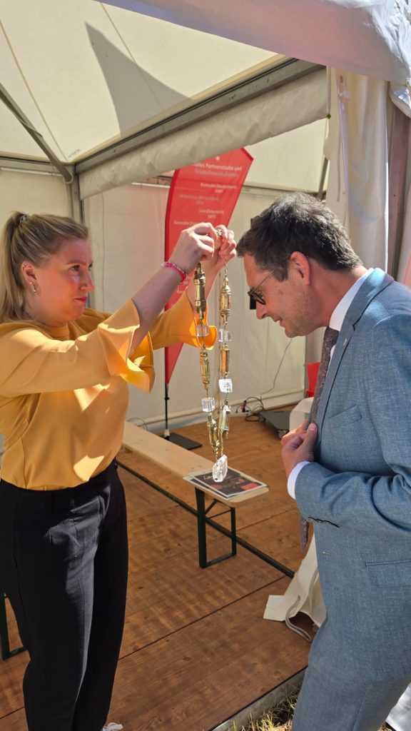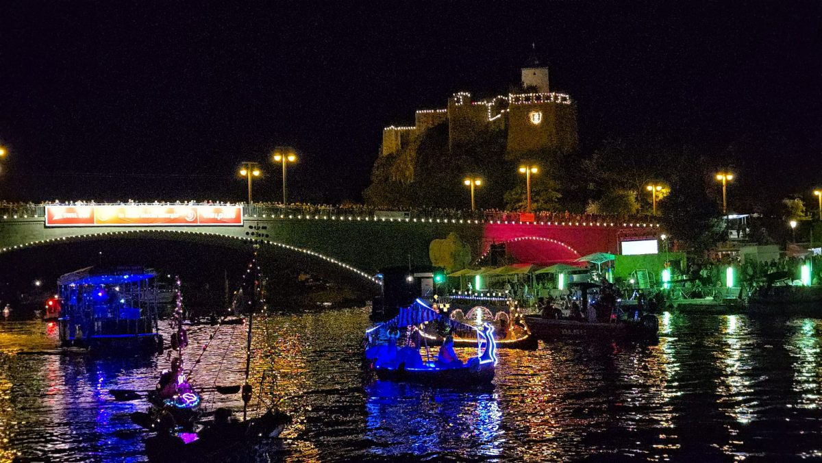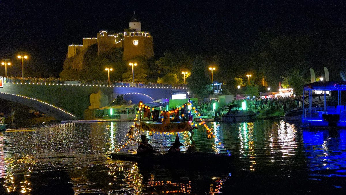 Zeitgleich wurde es auf dem Wasser romantisch und festlich. Der Bootskorso „Kunterbunt“ und später die „Leuchtenden Boote“ ließen die Saale in magischem Licht erstrahlen. Besonders emotional: der Moment, als zur „Glühenden Saale“ tausende Lichter auf dem Wasser trieben. Eine Tradition, die jedes Jahr aufs Neue Gänsehaut bereitet. Der Linzer Bürgermeister trug sich ins goldene Buch der Stadt ein.