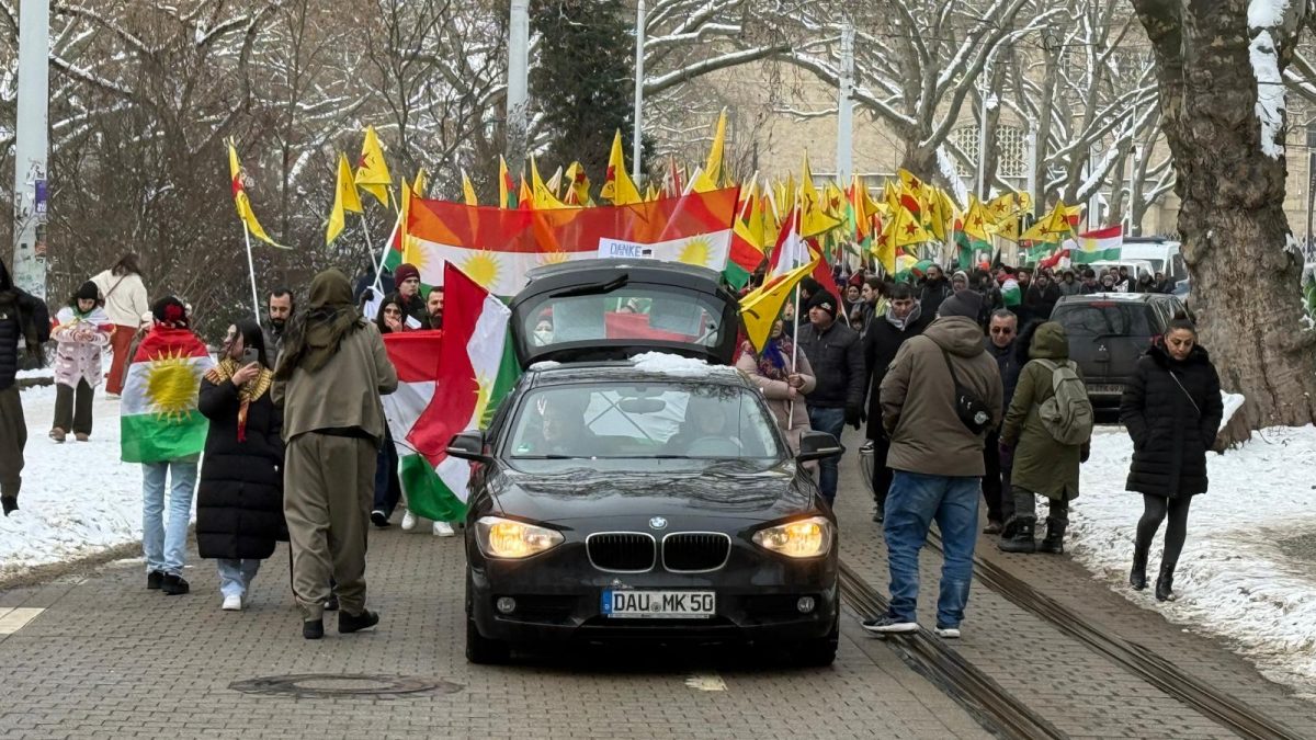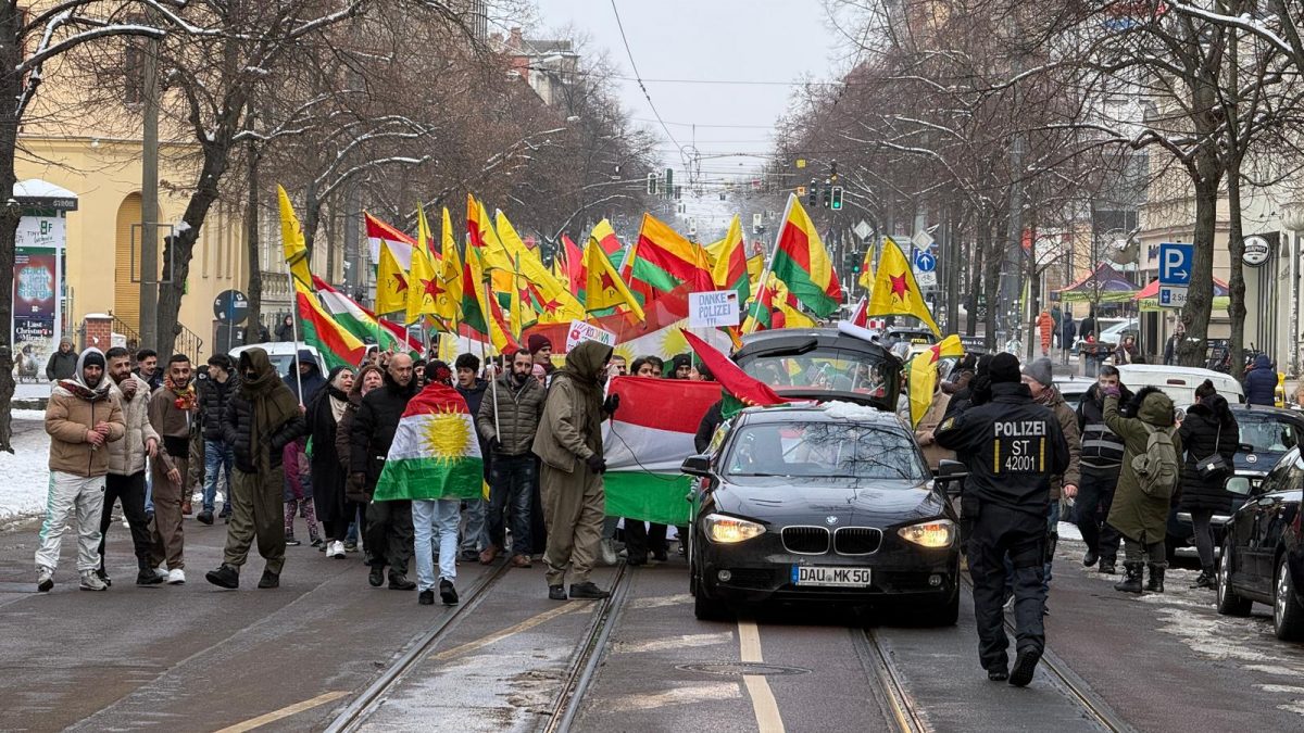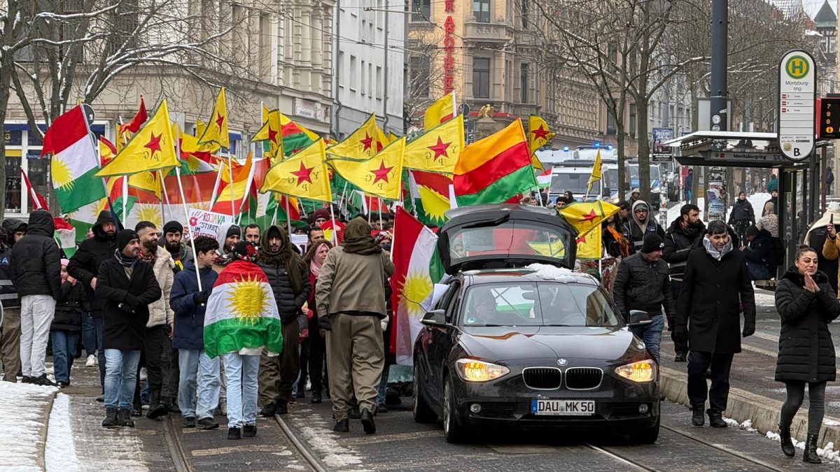 Eine Demonstration für ein freies Kurdistan ist am Samstagnachmittag durch die hallesche Innenstadt gezogen. Vom Landesmuseum aus ging es für die rund 300 Teilnehmenden bis zum Marktplatz. Kurdische Nationalflaggen wehten, ebenso wie Flaggen der Kurdischen Volksbefreiungseinheiten YPG.