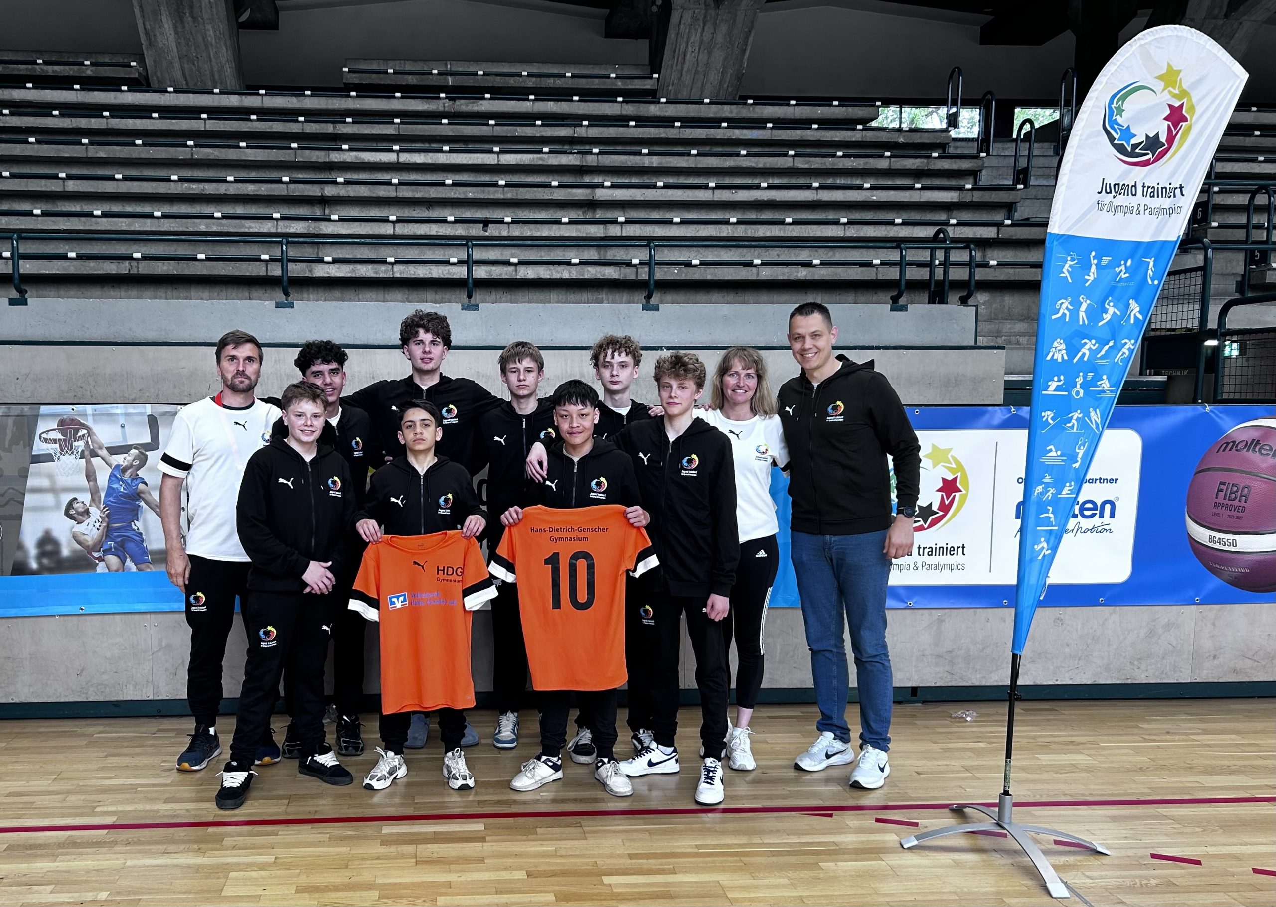 Auf dem Foto (privat): Basketballteam U16 männlich Genscher-Gymnasium mit Carsten Straube (rechts im Bild)