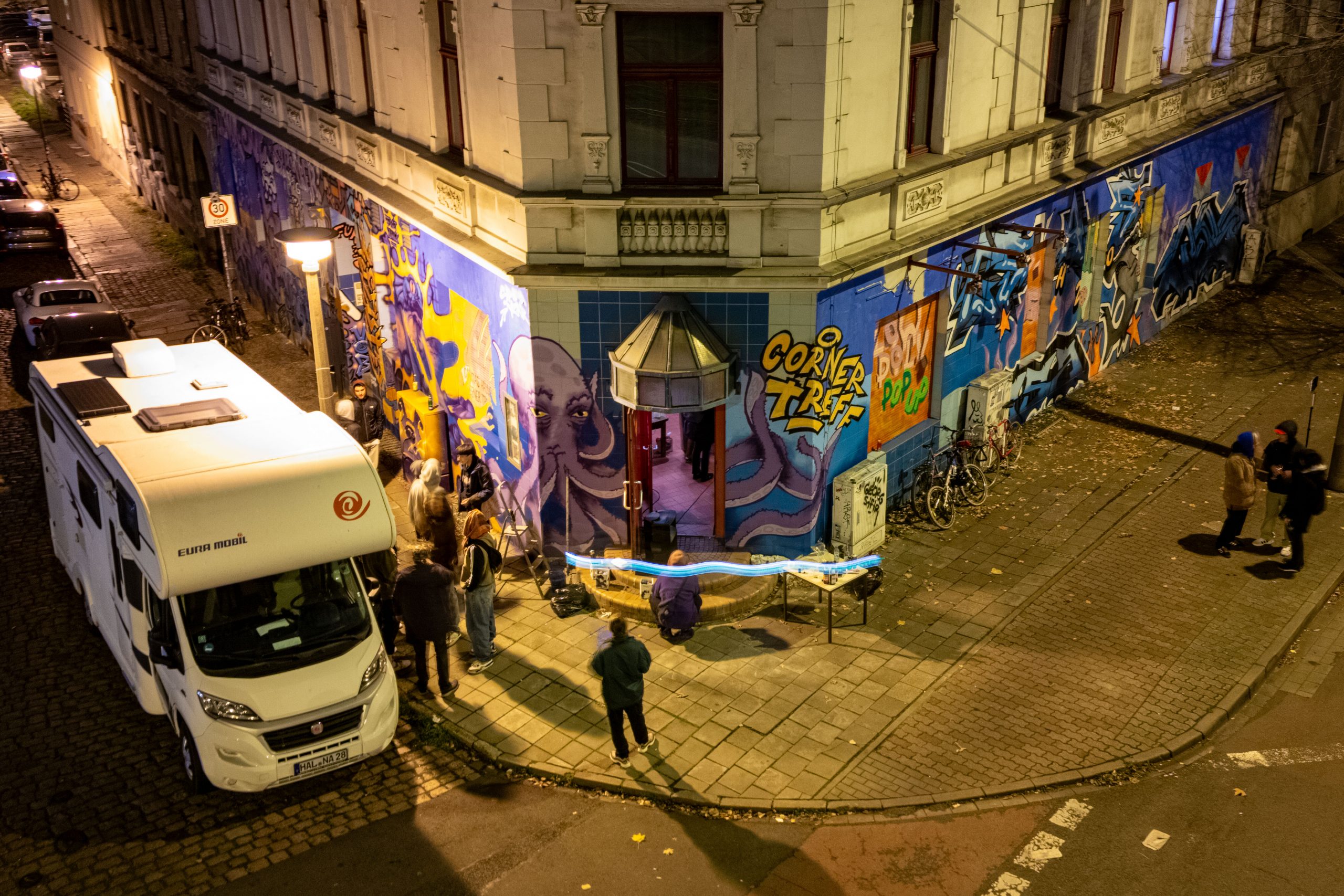 Die Aktion verfolgte zwei zentrale Ziele: Zum einen sollte sie die Interessen und Ausdrucksformen der Jugendlichen sichtbar machen, zum anderen diente sie als Werbemaßnahme, um den H2O als offenen Treffpunkt und kreativen Raum stärker in der Stadt bekannt zu machen. Der H2O ist ein Jugendclub am Wasserturm, der vielen Hallenser:innen noch aus früheren Zeiten bekannt ist, als das gesamte Gebäude bereits als Jugendtreff genutzt wurde, bevor es 2010 geschlossen wurde. Seit Januar dieses Jahres ist der Club wieder geöffnet und versteht sich als Ort für neue Ideen, Engagement und kreative Visionen in der Stadt. Träger des Jugendtreffs ist der BBRZ e.V. Aschersleben.