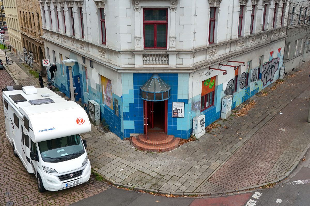 Am Samstag wurde die Fassade des Jugendtreffs H2O im Eckhaus Hardenbergstraße / Volkmannstraße neu gestaltet. Jugendliche und junge Erwachsene im Alter von 17 bis 24 Jahren verliehen dem Haus ein frisches, farbenfrohes Erscheinungsbild. Die Gestaltung orientierte sich am Leitmotiv des H2O: Wasser. Entsprechend prägen Meereswesen wie ein Oktopus, ein Hammerhai, Piranhas und Seeungeheuer die Fassade. Zwischen diesen Motiven finden sich sogenannte Styles aus der Graffiti-Kultur – künstlerische Schriftzüge, in denen Buchstaben zu individuellen, bildhaften Interpretationen verschmelzen. Am Abend fand zudem ein Konzert des StylerBerg HipHop-Labels aus Halle statt, das zahlreiche Besucher:innen, insbesondere viele junge Menschen, anlockte.