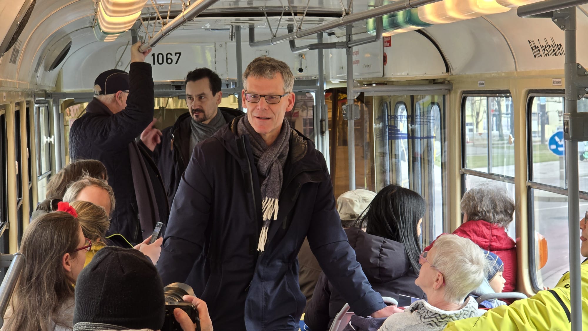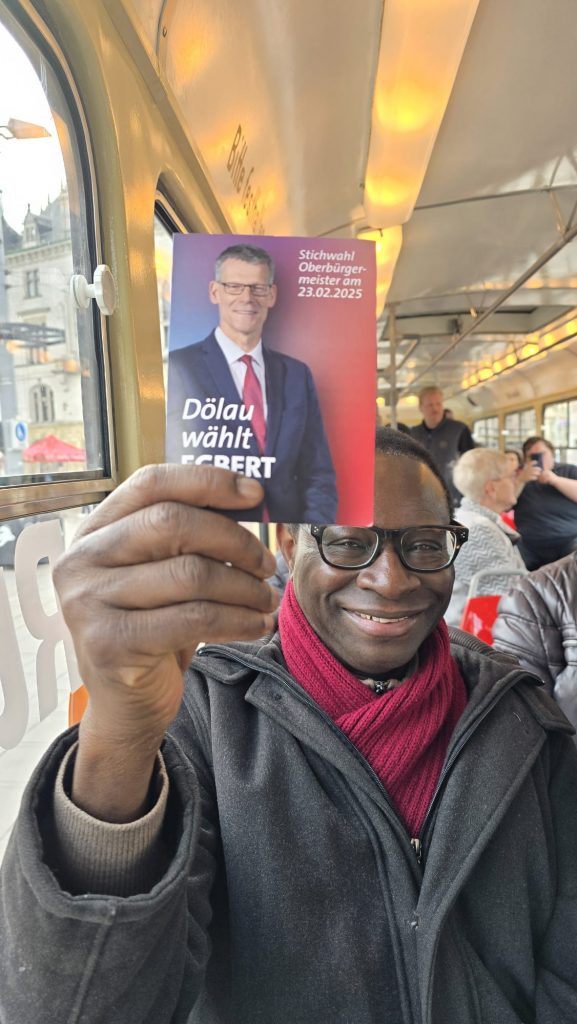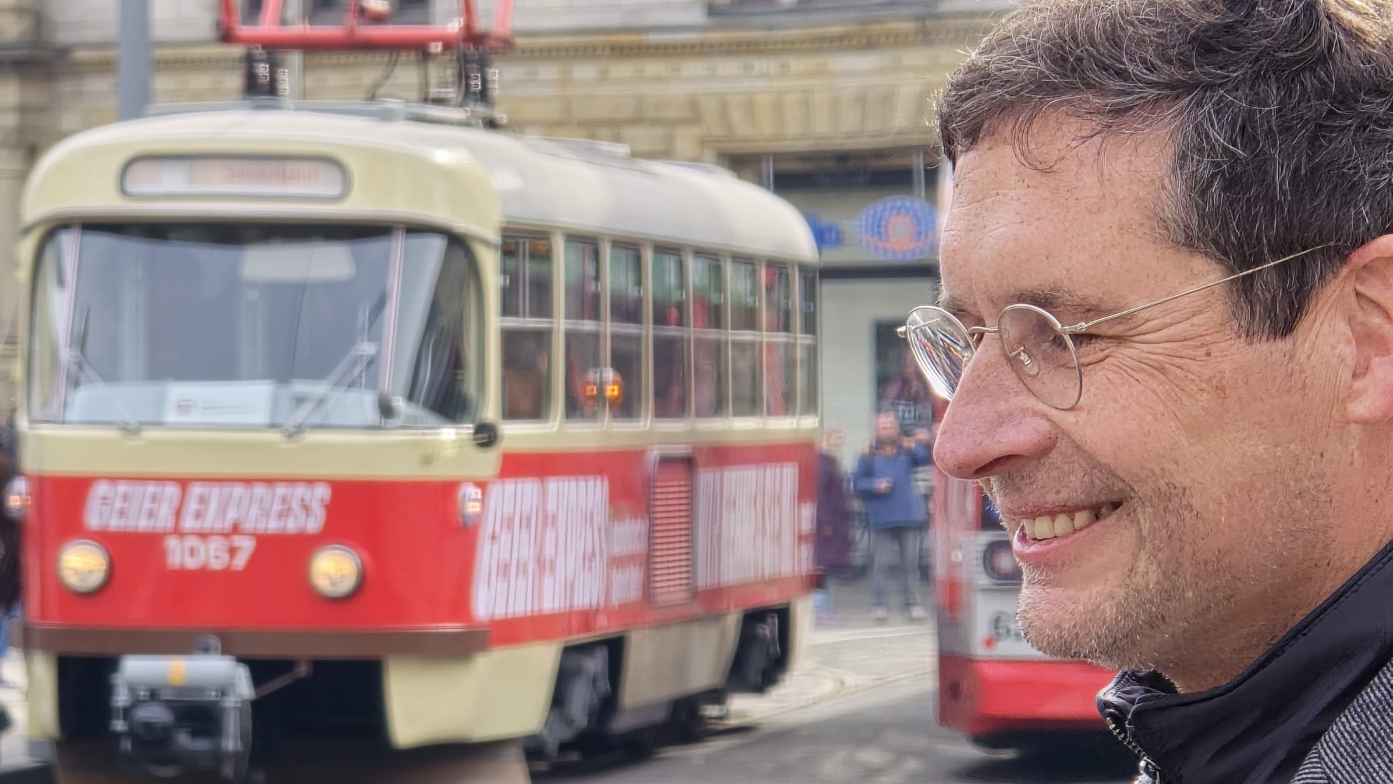 Eine historische Tatra-Straßenbahn ließ Egbert Geier rollen. Der “Geier-Express” rollte auf dem Rundkurs Markt – Steintor – Riebeckplatz – Markt. Eine Mitfahrt war kostenlos. Geier unterhielt sich mit den Fahrgästen über ihre Wünsche und Sorgen. “Ich habe sie schon in der ersten Wahl gewählt und jetzt natürlich wieder”, sagte eine andere Frau. Geiers unaufgeregte Art wurde gelobt. Und ein Mutter-Tochter-Gespann – mit 16 ist auch die Tochter wahlberechtigt – entschied sich wegen dessen realistischer Aussagen für Geier. Vogt habe alles mögliche im Wahlkampf versprochen. Dabei sei doch schon von vornherein klar, dass dies sich in der Form nicht umsetzen lasse.