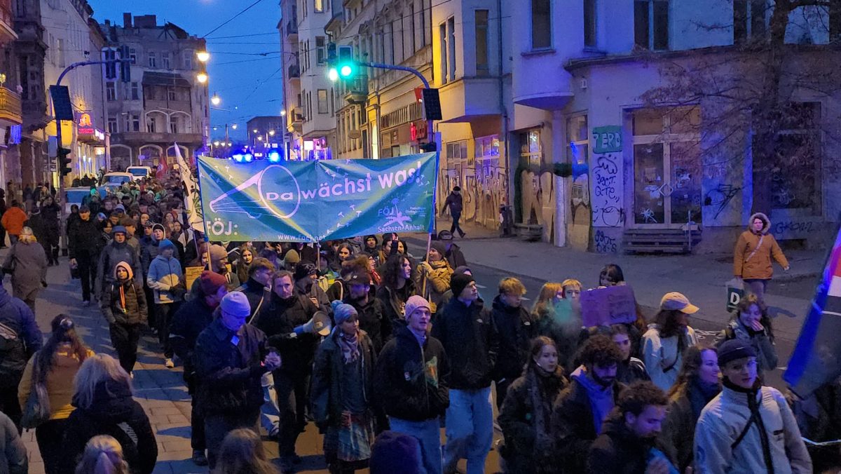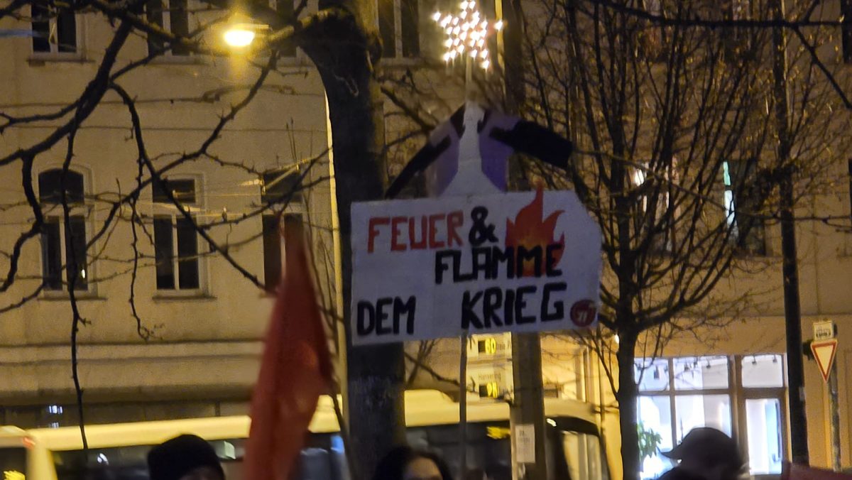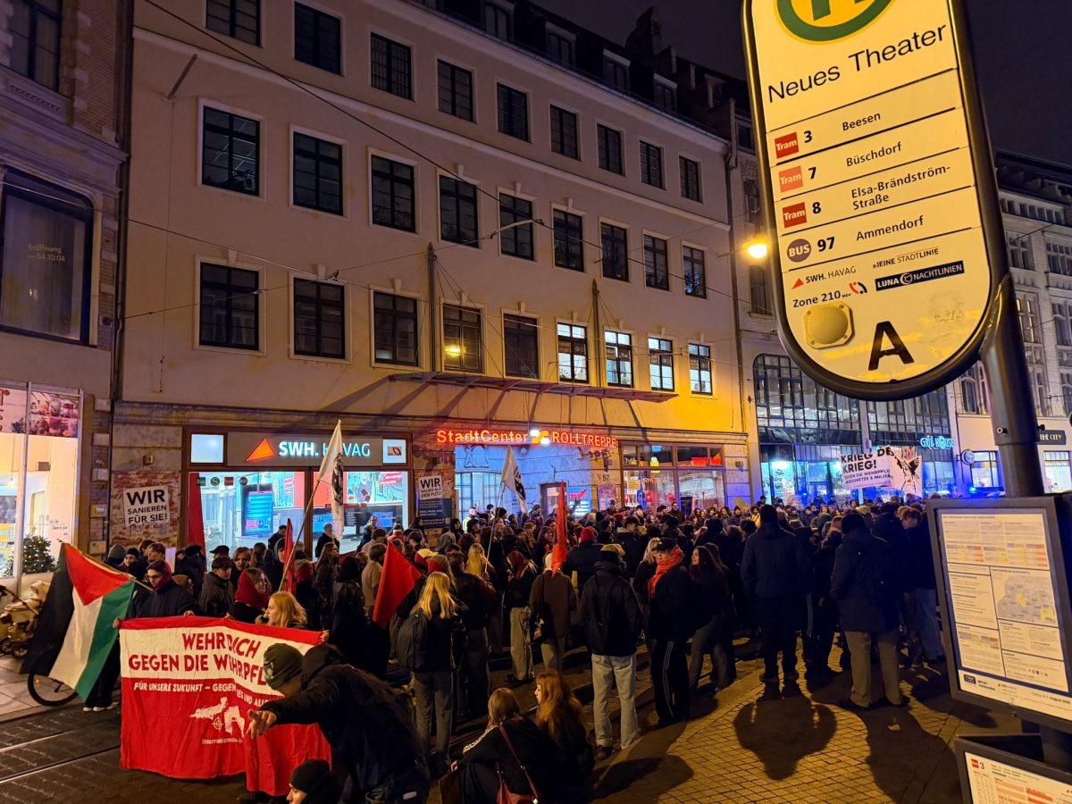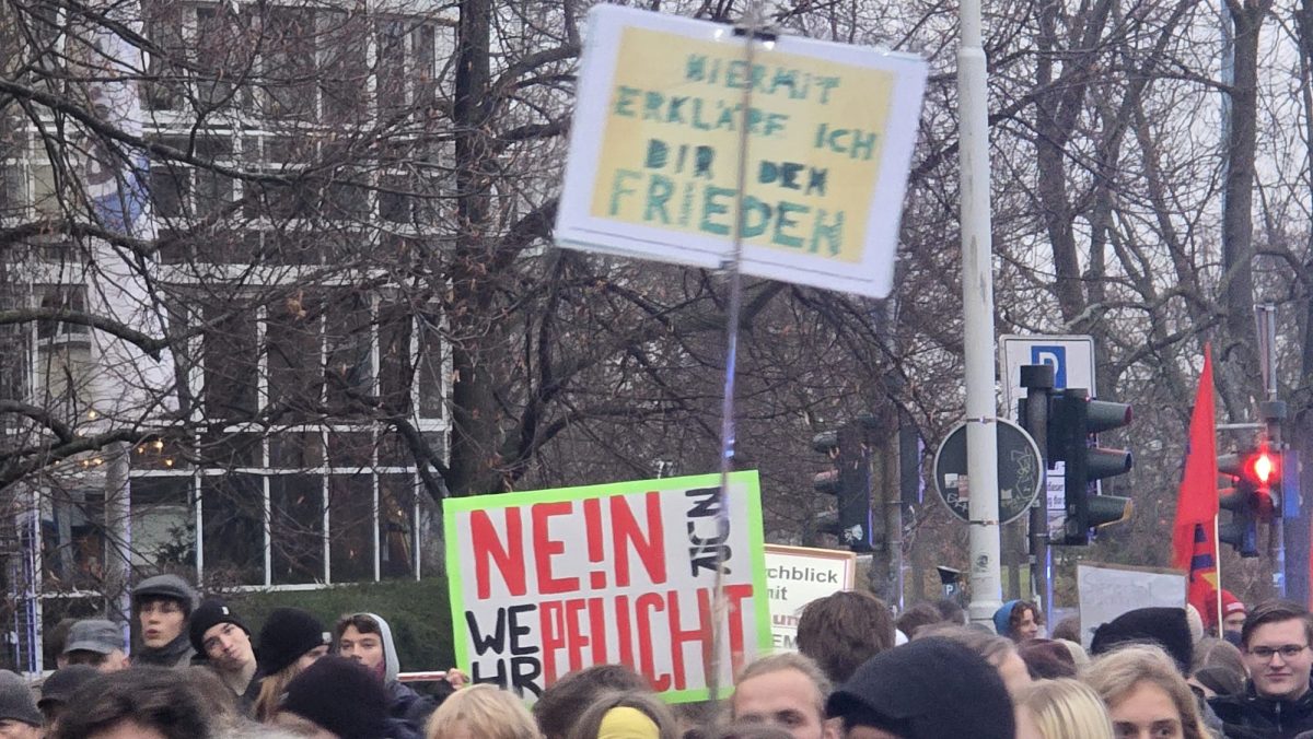 Der Freitagnachmittag am halleschen Riebeckplatz begann laut und eindringlich. Aus großen Lautsprechern dröhnte der Hit „Boom, Boom, Boom, Boom – ich bring euch alle um“ der HipHop-Band K.I.Z., der in dieser Situation weniger als Partyhymne, sondern vielmehr als provokanter Auftakt eines politischen Protests diente. Wenige Stunden zuvor hatte der Bundestag die Wiedereinführung der Wehrpflicht beschlossen. Für viele der Demonstrierenden war dies ein unerträglicher Rückschritt, und so erhoben sich am verkehrsreichen Platz Banner, Fahnen und Plakate, auf denen Forderungen wie „Nie wieder Krieg“, „Frieden braucht keine Waffen“ und „Krieg dem Krieg“ zu lesen waren. Die Atmosphäre war aufgewühlt, aber friedlich, getragen von dem Gefühl, dass hier eine Generation ihre Zukunft bedroht sieht. Die Sozialistische Deutsche Arbeiterjugend (SDAJ) und die Linksjugend Solid hatten zur Demonstration aufgerufen, der sich nach Polizeiangaben rund 400 überwiegend junge Menschen anschlossen.