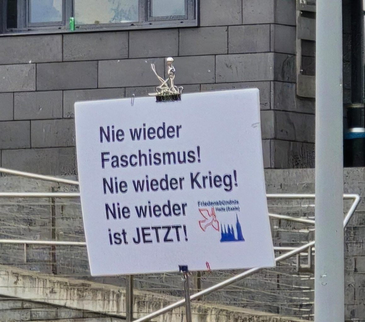 Krieg dem Krieg! Was wollen die Parolenschreiber uns damit sagen? Bewaffneter Widerstand gegen Staat und Gesetze? Leichter kommen sie nicht an Waffen und Ausbildung, um diese Forderung umzusetzen. Gar kein dummer Gedanke, einziehen lassen, Waffe und Munition bekommen, desertieren , Haus, Familie, Hof beschützen. Vielleicht bleibt für Land und Leute auch was übrig.?