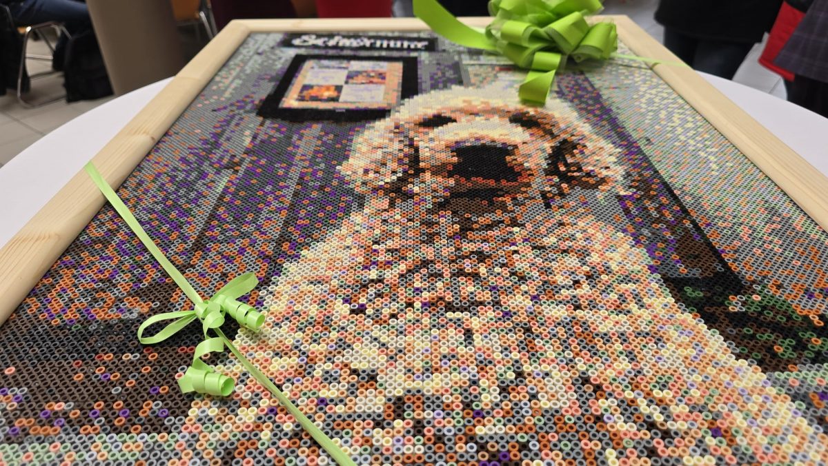 Kunst aus Bügelperlen: Hallesche Behindertenwerkstätten (HBW) schenken Oberbürgermeister Vogt Porträt seines Hundes Henri