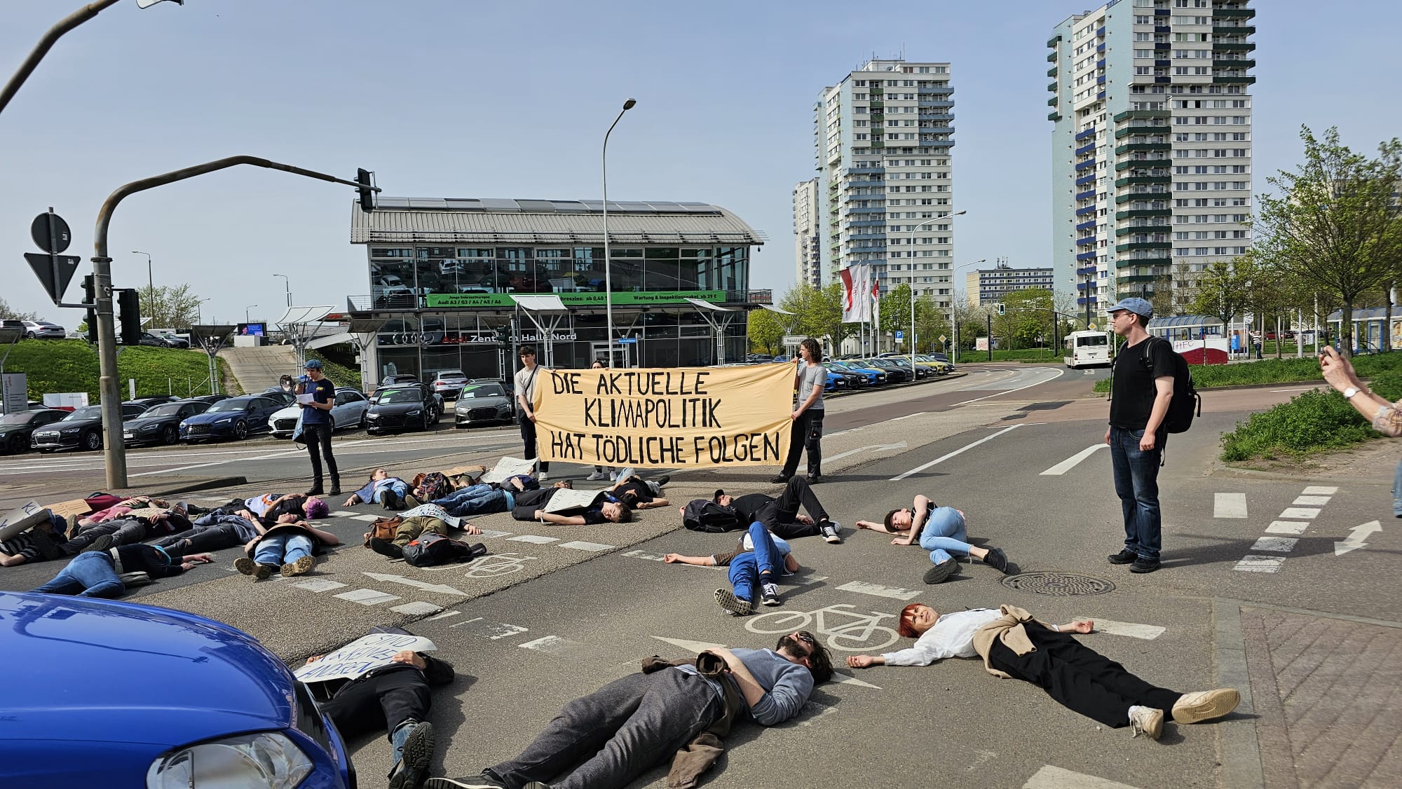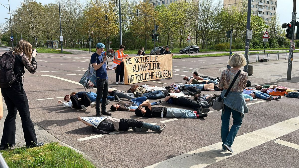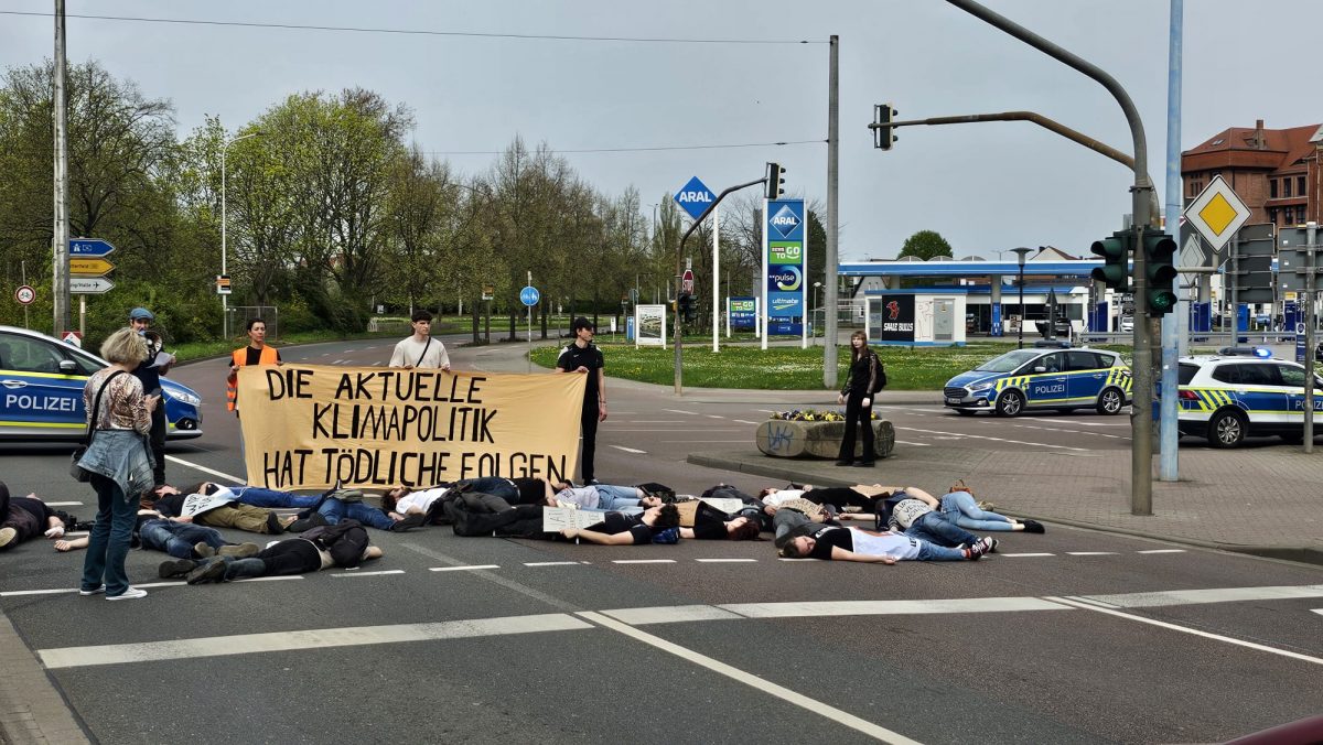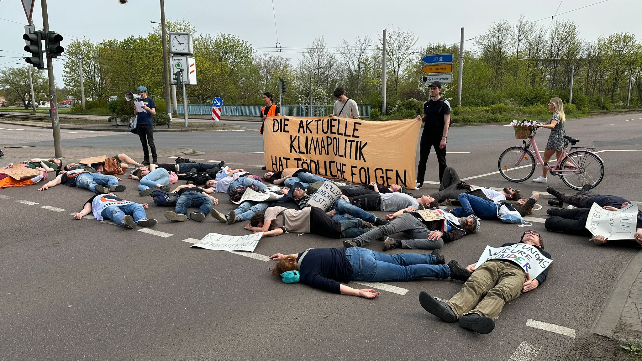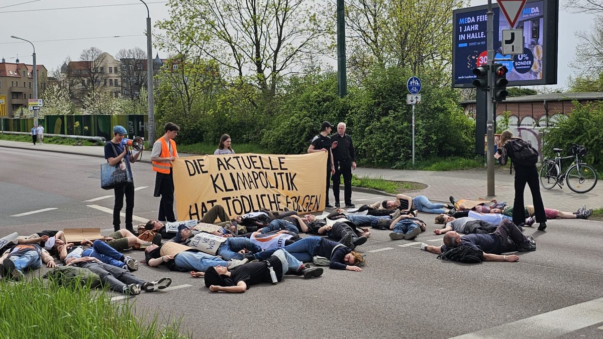 Am Sonntagnachmittag gab es in Halle (Saale) mehrere Straßenblockaden durch die Klimabewegung Letzte Generation.