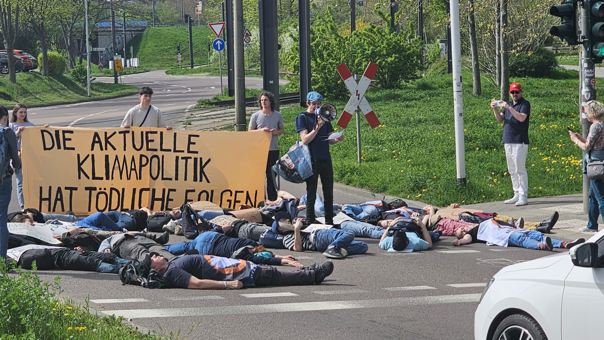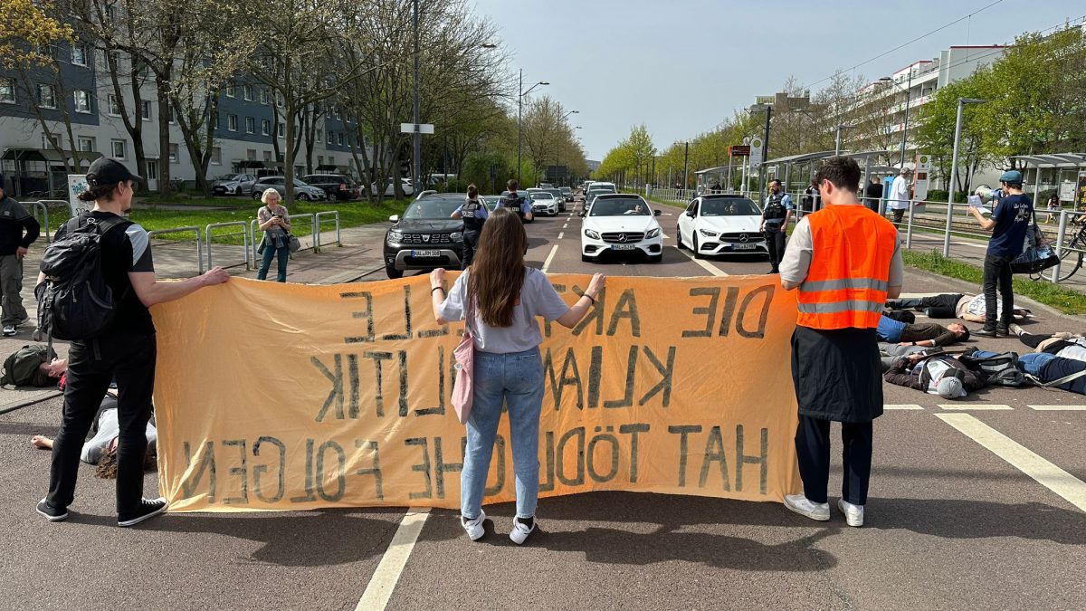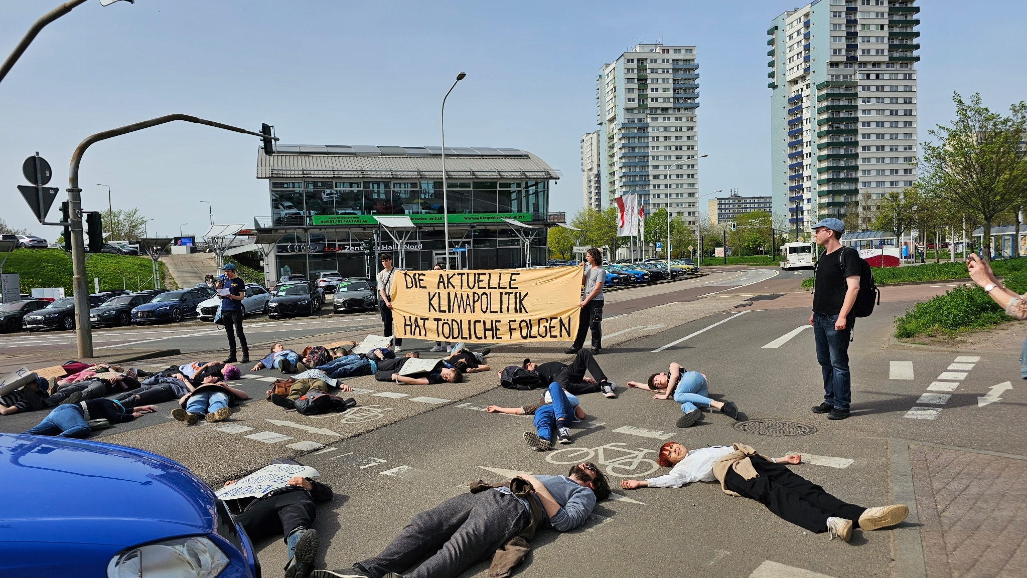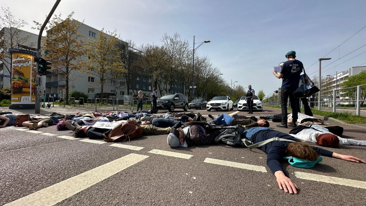 Am Sonntagnachmittag gab es in Halle (Saale) mehrere Straßenblockaden durch die Klimabewegung Letzte Generation.
