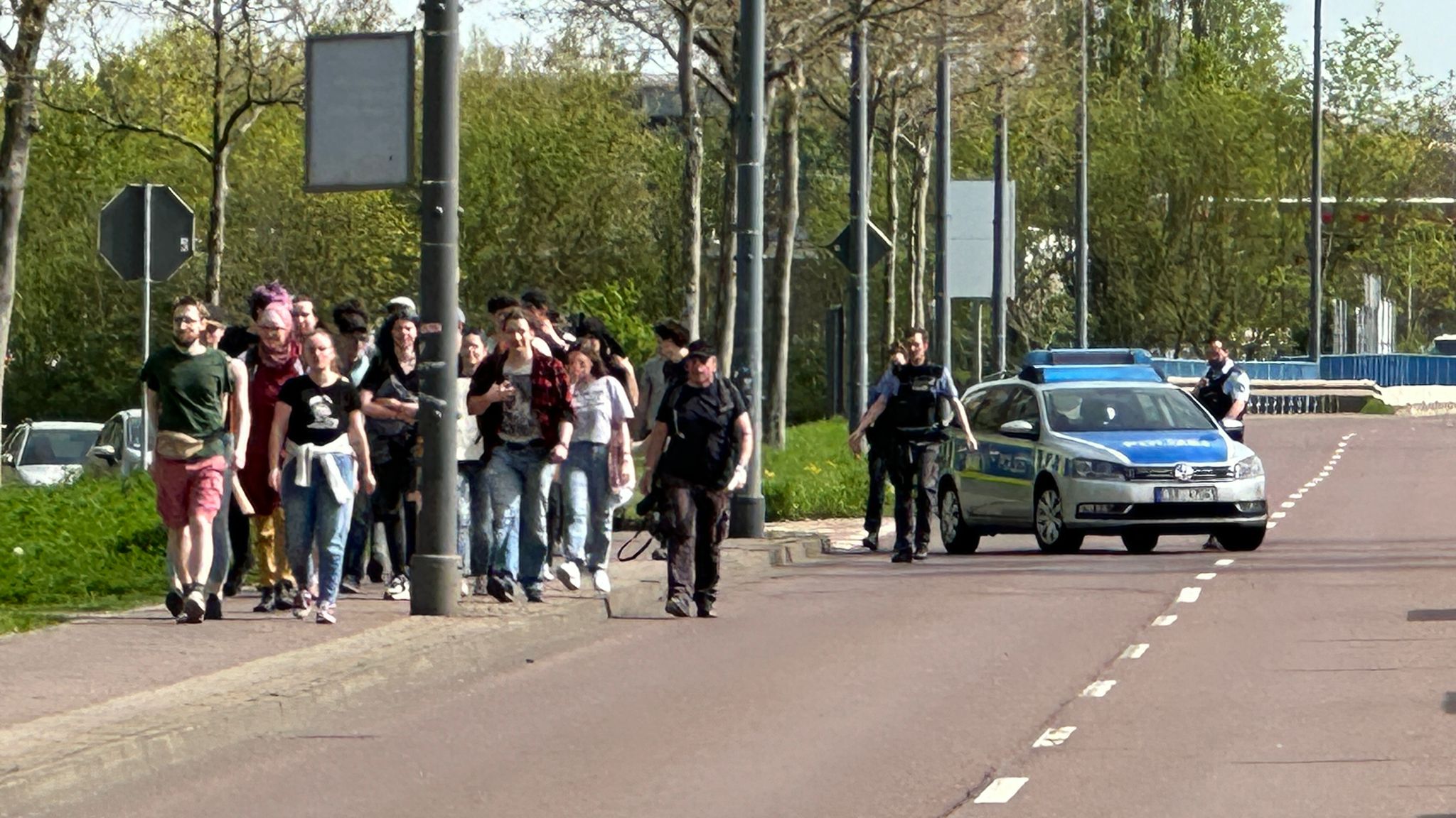 Zu ihren Aktionen fuhren die Demonstranten mit der Straßenbahn oder liefen dorthin. Für die Polizisten eine schwierige Situation. Sie fuhren teilweise in der Straßenbahn mit oder mit den Polizeiautos hinterher, um zu erfahren, wo denn wieder Aktionen geplant sind.