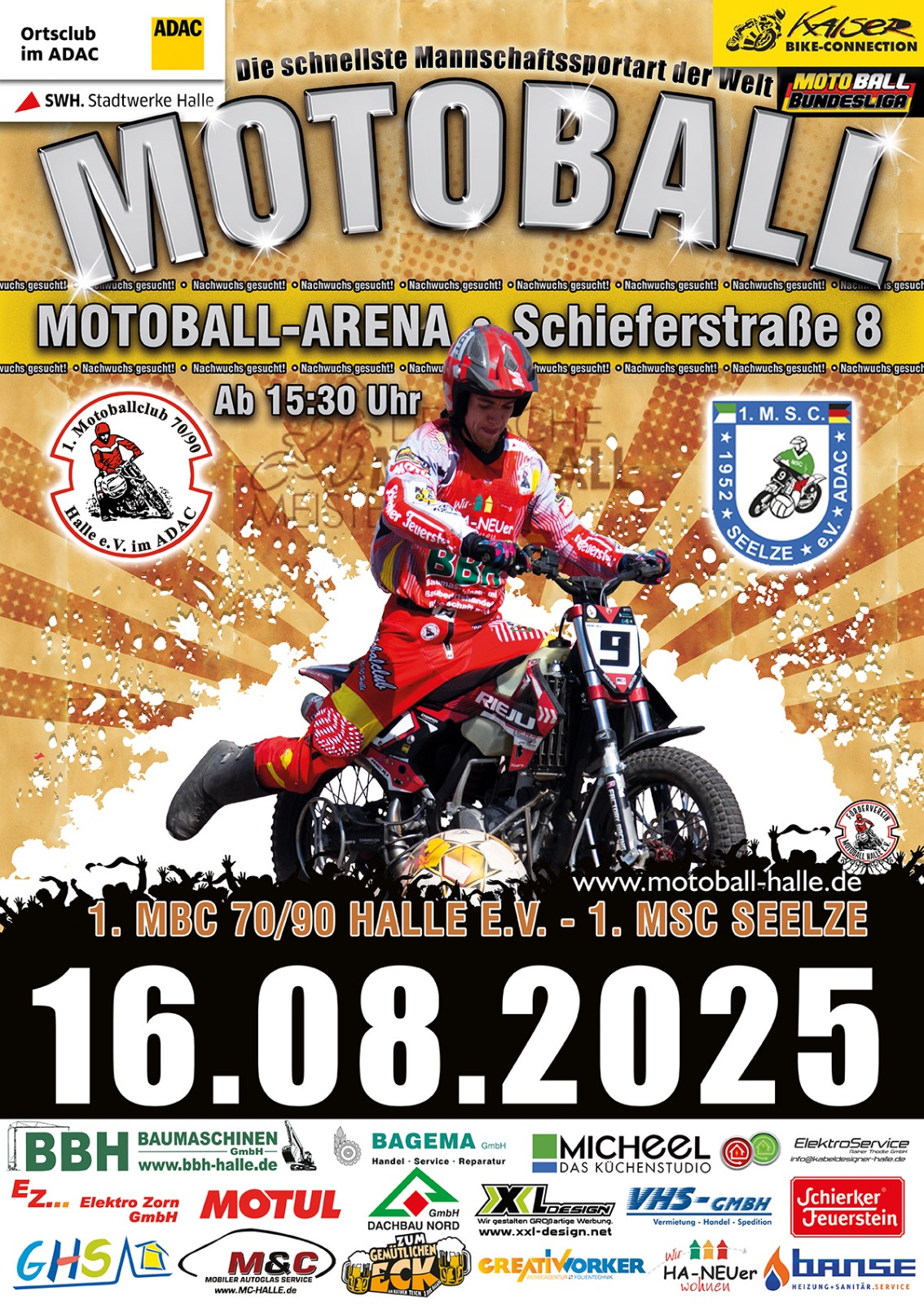 Am Samstag den 16.08.25 empfängt der 1.MBC 70/90 Halle e.V. im ADAC den 1.MSC Seelze zu seinem letzten Spiel der Liga Nord 2025. Die Seelzer stehen bereits vor dem Spiel als Tabellen Erster fest. Halle belegt zur Zeit den 3.Platz.
