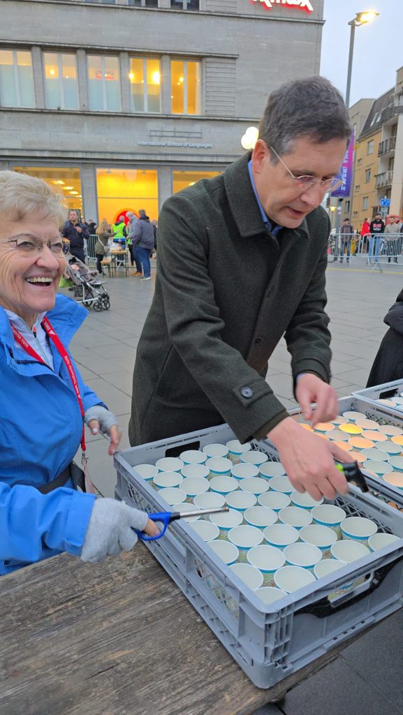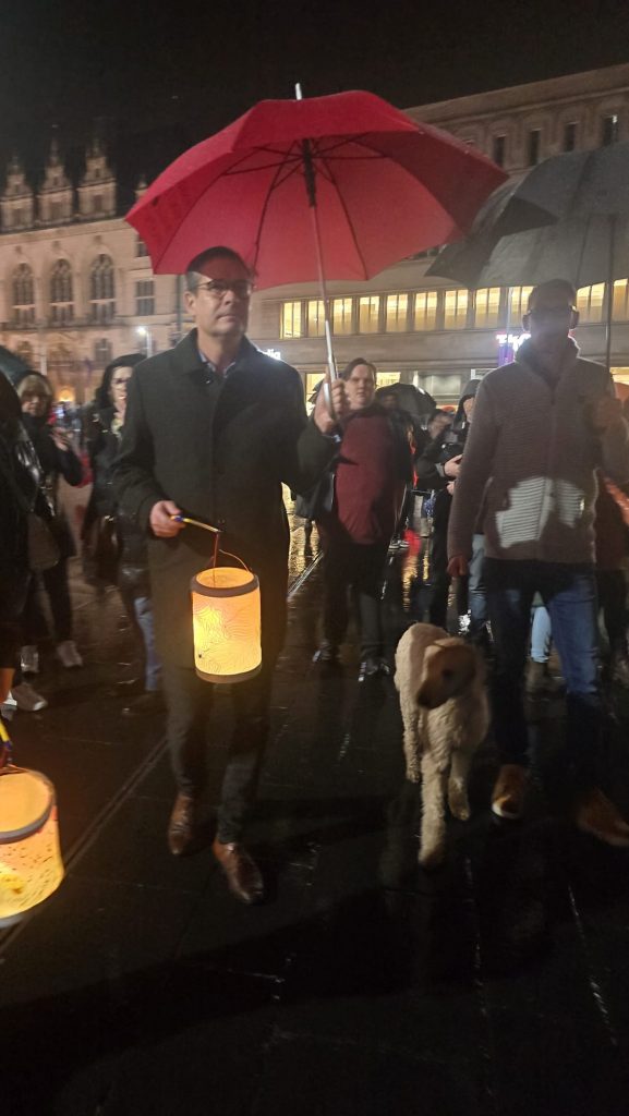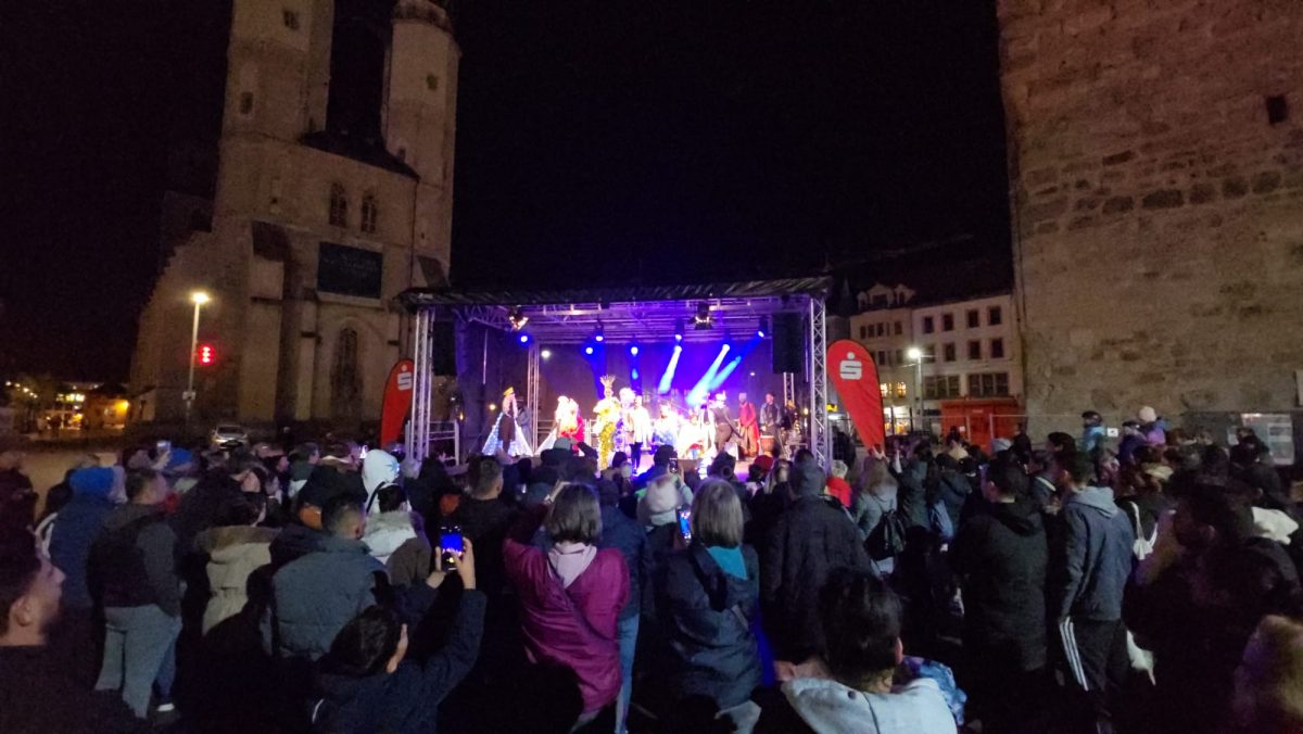 Dass das Fest überhaupt stattfinden konnte, grenzt an ein kleines Wunder. Maria Gringer, Vorsitzende der City-Gemeinschaft, die maßgeblich an der Organisation beteiligt ist, dankte in diesem Zusammenhang nicht nur der Saalesparkasse, sondern auch dem Team Märkte der Stadtverwaltung. Die Rahmenbedingungen waren alles andere als einfach: In nur drei Wochen gelang es dem Organisationsteam, die gesamte Veranstaltung auf die Beine zu stellen. „Ich bin stolz auf den Zusammenhalt in der Stadt“, betonte Maria Gringer. „Wenn es hart auf hart kommt, dann halten wir alle zusammen, stehen Schulter an Schulter.“ Ein Geist, den sich viele von Halle abschauen könnten. Auch Oberbürgermeister Dr. Alexander Vogt unterstrich die Bedeutung der Veranstaltung für die Saalestadt: „Es ist ein wichtiges Fest in der dunklen Jahreszeit.“ Er hob zudem den stärkenden Effekt für die Innenstadt hervor: „Wenn wir den Einzelhandel in der Stadt stärken wollen, dann brauchen die Leute auch einen Grund, jedes Wochenende in die Innenstadt zu kommen.“ Mit Blick auf das kommende Jahr kündigte er an, noch mehr Veranstaltungen auf den Markt holen zu wollen, darunter die Ausrichtung von gleich zwei Weinfesten.