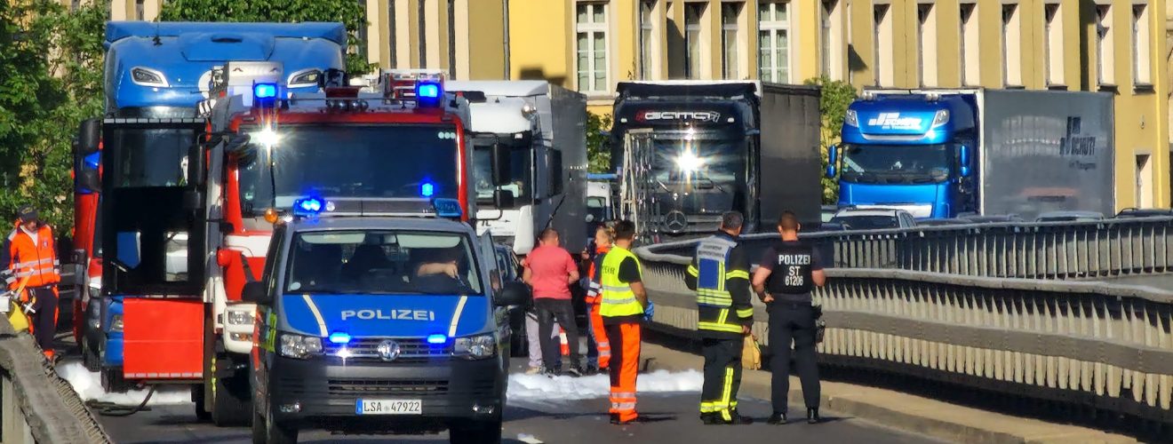 Am Donnerstagmorgen kurz nach 8 Uhr ist auf der Hochstraße in Höhe der Franckeschen Stiftungen der Reifen eines LKW in Brand geraten. Laut Polizei gab es einen technischen Defekt. Durch die Lösch- und Bergungsmaßnahmen … Lkw-Reifen brannte: Hochstraße für eine halbe Stunde gesperrt weiterlesen