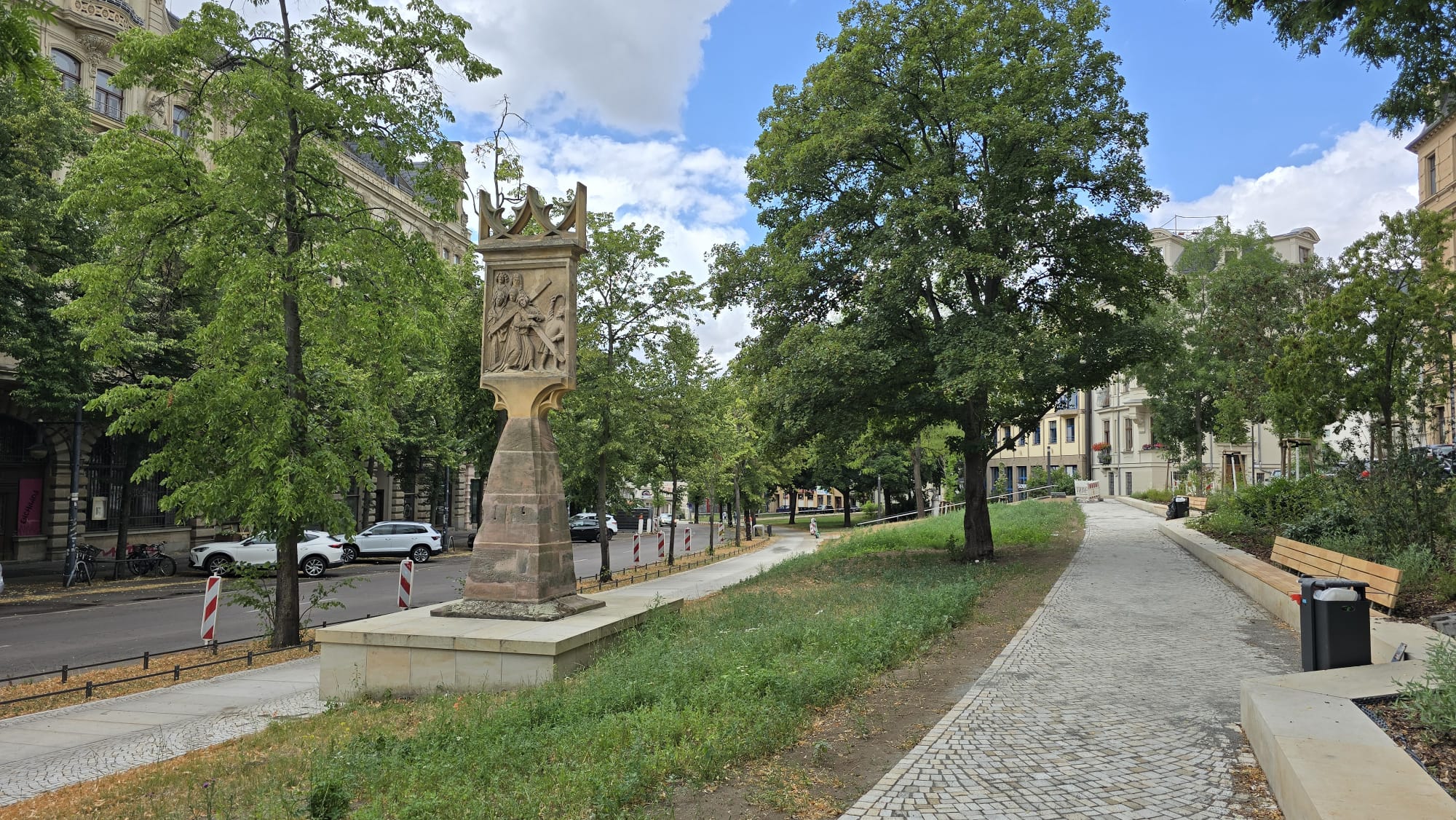 Auch das Robert-Franz-Denkmal, eine Hommage an den halleschen Komponisten, hat seinen angestammten und würdigen Platz in der aufgewerteten Grünanlage behalten.