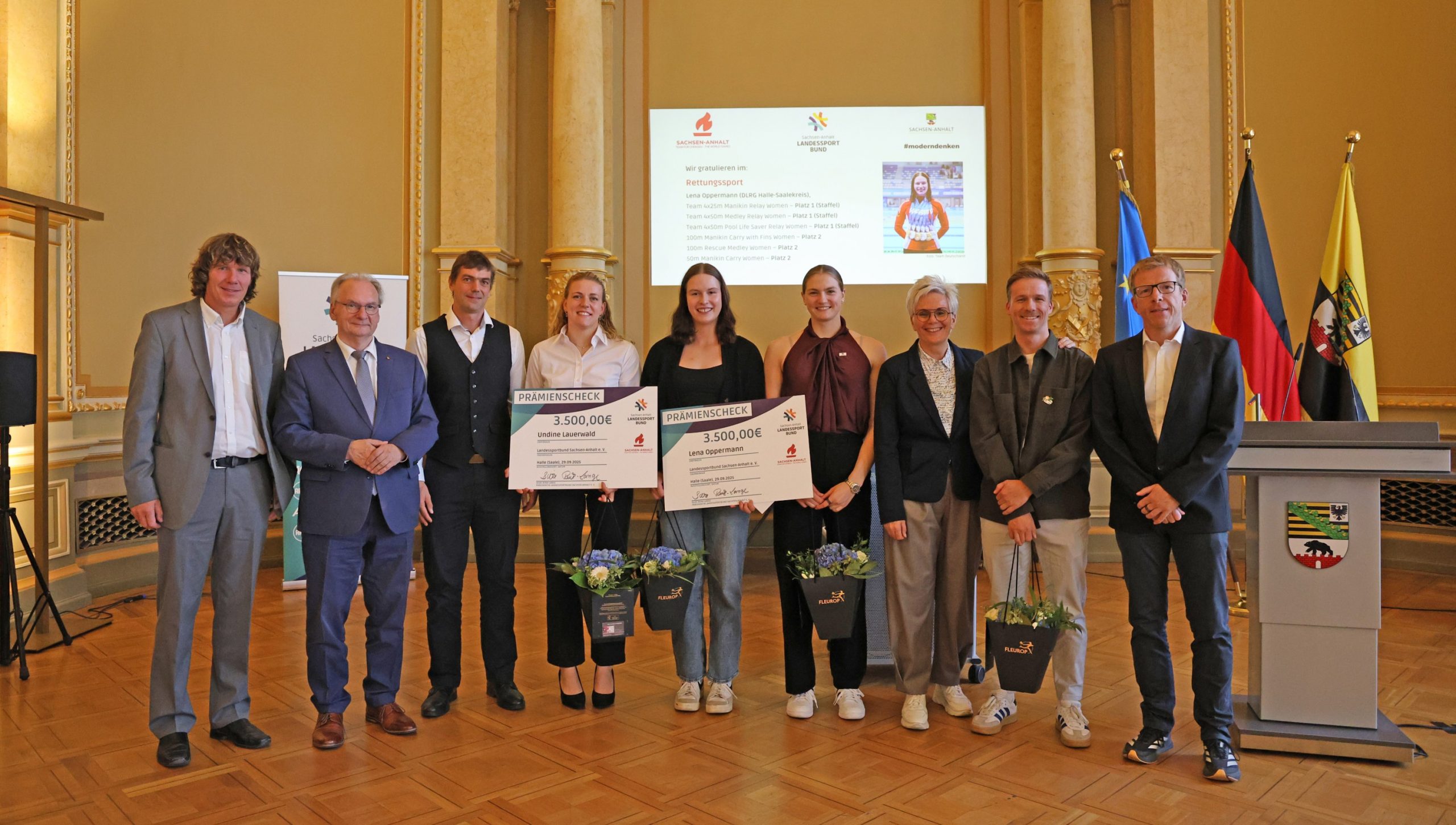Besonders erfolgreich kehrten die beiden Rettungsschwimmerinnen der DLRG Halle-Saalekreis aus China zurück: Lena Oppermann sicherte sich gleich drei Gold- und drei Silbermedaillen bei ihrer ersten Teilnahme. Teamkollegin Undine Lauerwald nahm drei Gold- und eine Silbermedaille mit nach Hause und bestätigte damit nochmal die Erfolge von den World Games in den USA. Auch Nina Holt nahm am Empfang teil. Mit fünf Goldmedaillen bei fünf Starts ist die in Magdeburg trainierende Holt nicht nur die erfolgreichste Sportlerin dieser World Games, sondern auch die erste Athletin, die im Rettungsschwimmen fünf Goldmedaillen bei einer Ausgabe gewinnen konnte.