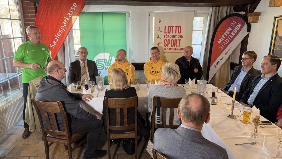 „Dr. Jürgen Fox, Vorstandsvorsitzender der Saalesparkasse, unterstrich die Bedeutung der finanziellen Absicherung und die Vorfreude auf kommende Erfolge. Er kündigte an, dass man „Edelmetall mit Geld vergüten“ werde.“