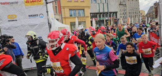 Mittlerweile ist es schon Tradition, dass sind die Kinderfeuerwehren aus der Region beim Mitteldeutschen Marathon beteiligen. Auf dem halleschen Marktplatz war dabei eine kleine Wettkampfstrecke für die Nachwuchs-Löschkräfte aufgebaut.