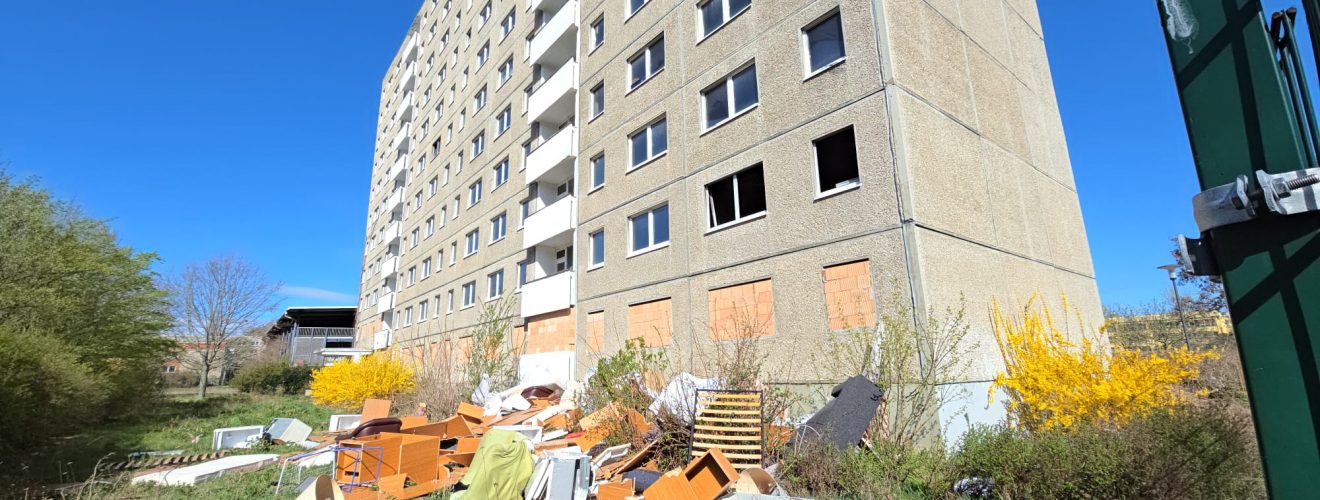 Möbel fliegen aus dem Fenster: Brand-Hochhaus in der Silberhöhe wird entrümpelt