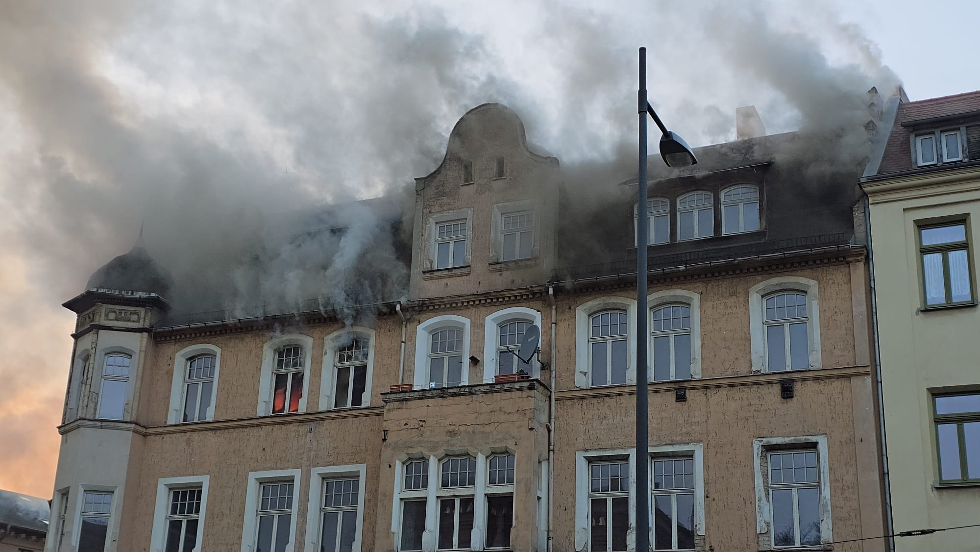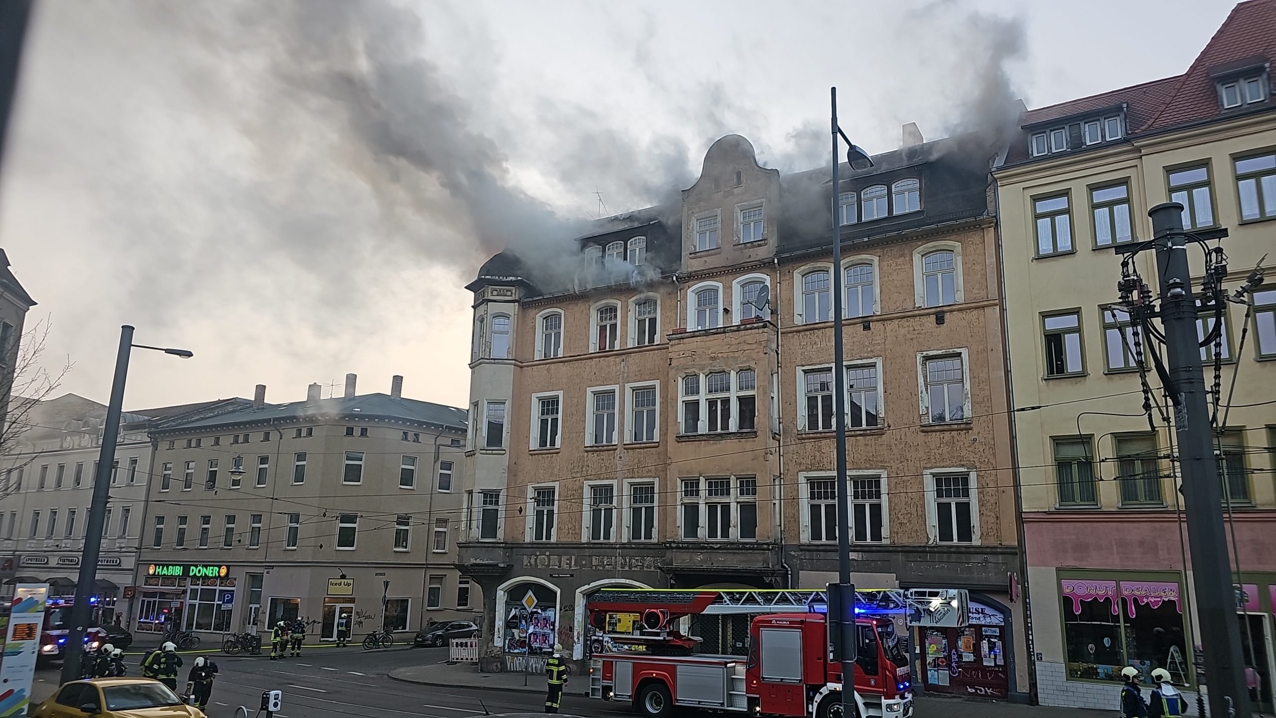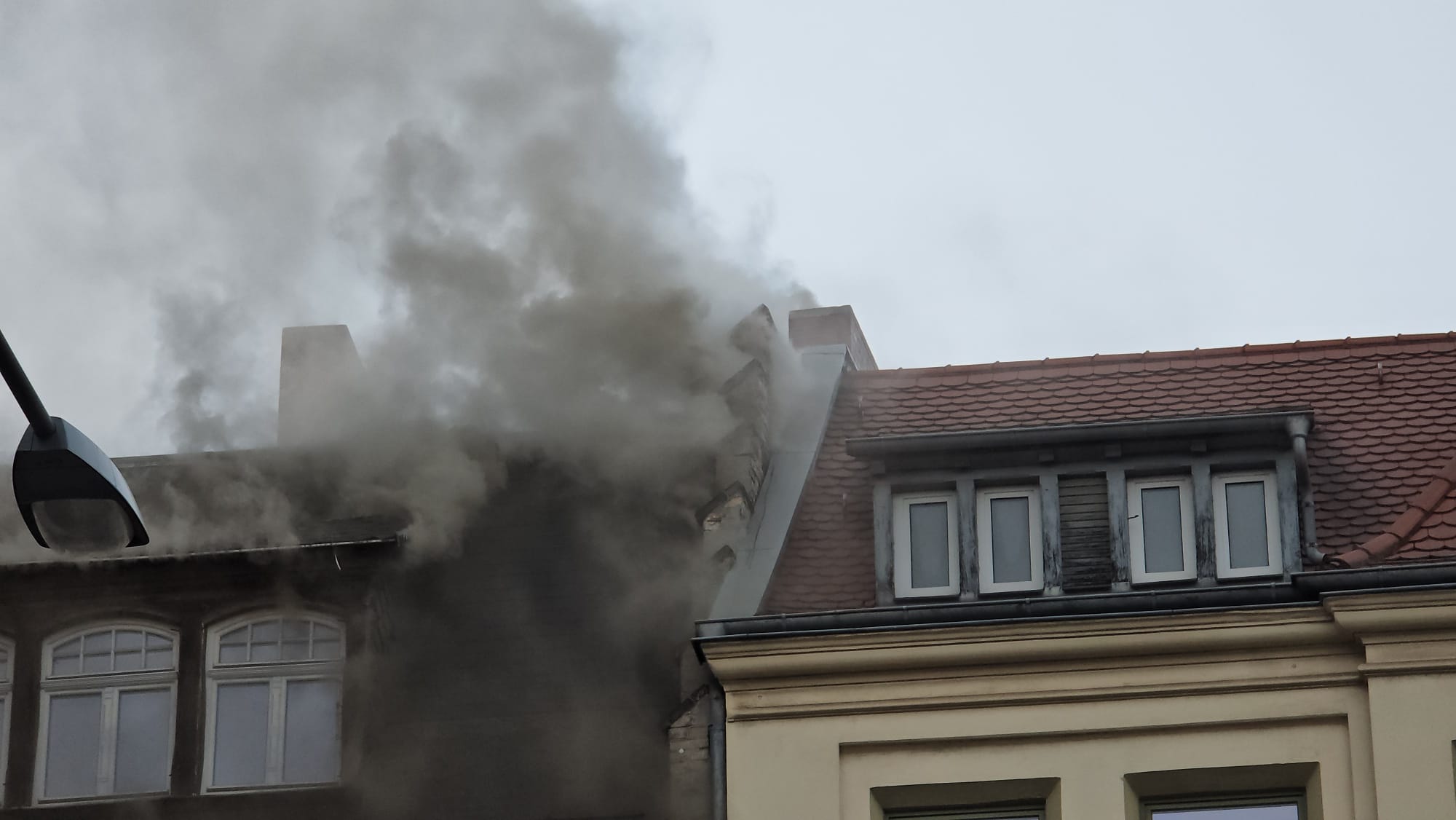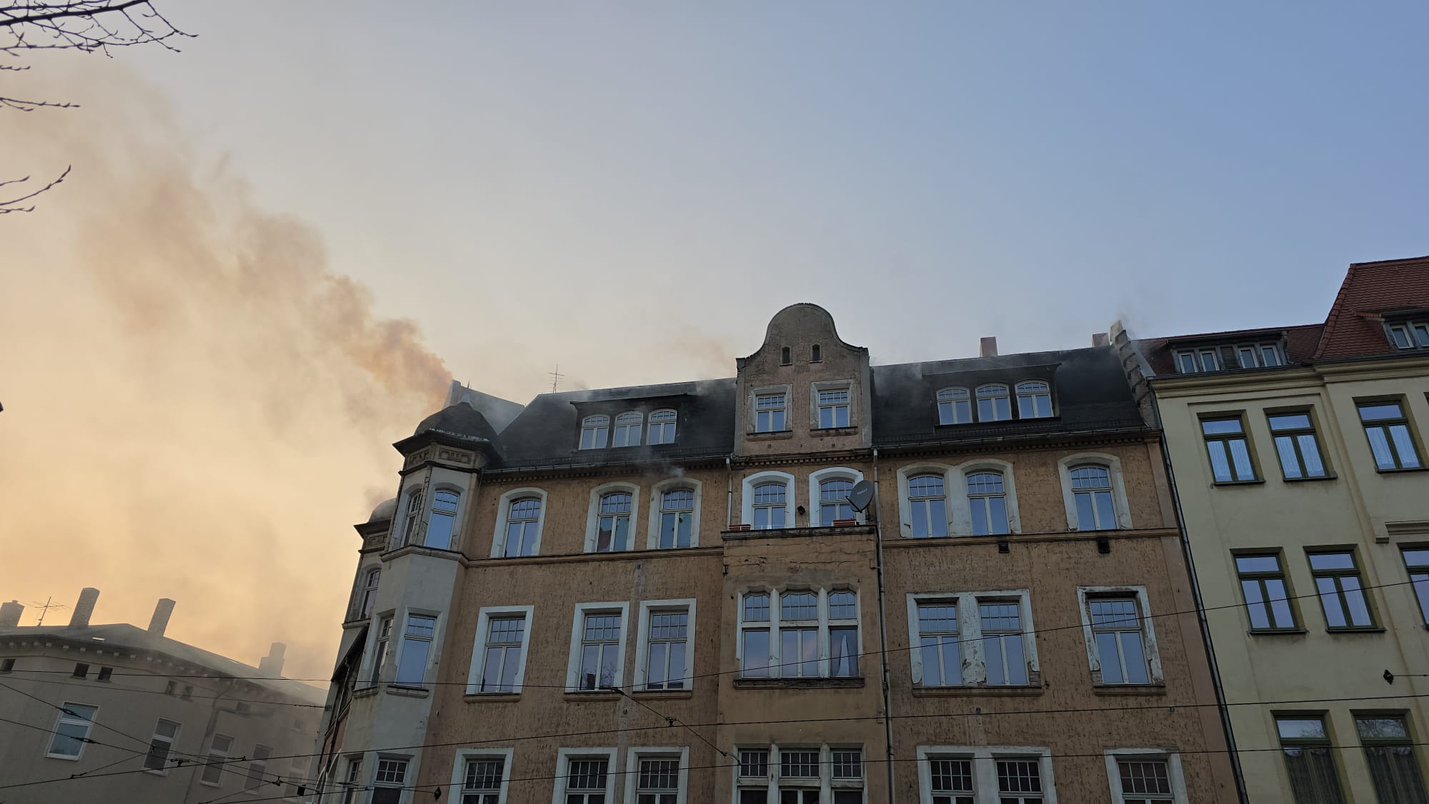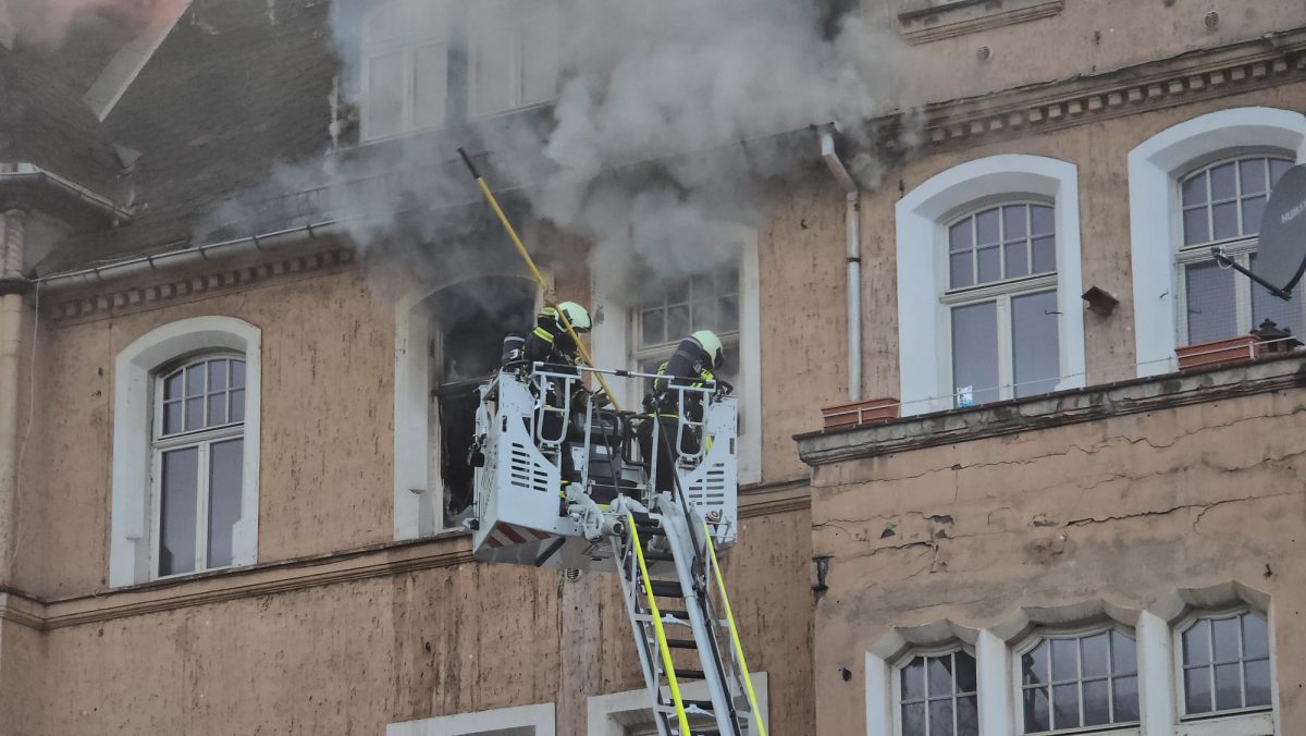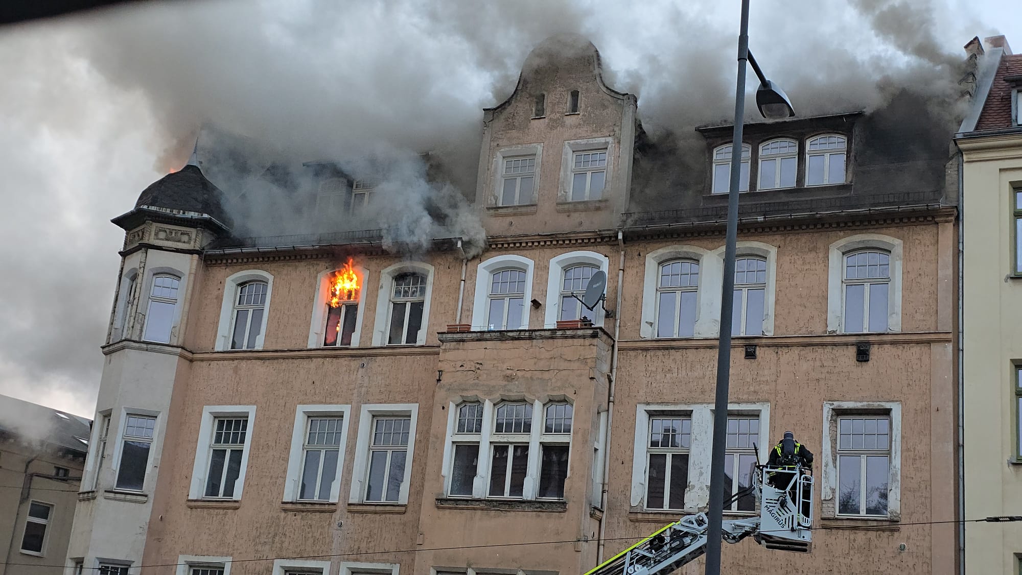 Gegen 18 Uhr am Dienstagabend drangen Rauchwolken aus einem Gebäude in der Großen Steinstraße Ecke Ludwig-Stur-Straße, Trümmerteile der Fassade und von zerborstenen Fensterscheiben stürzten nach unten.