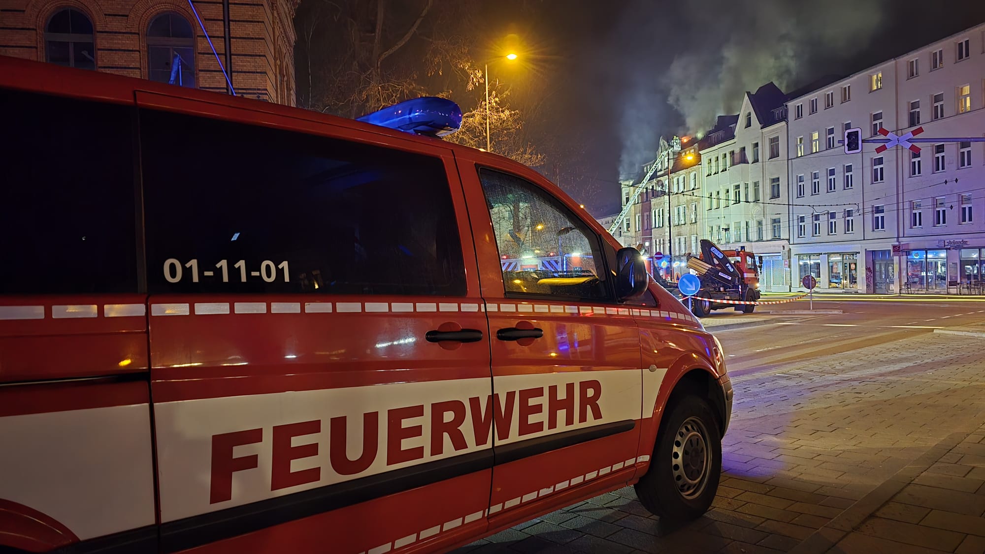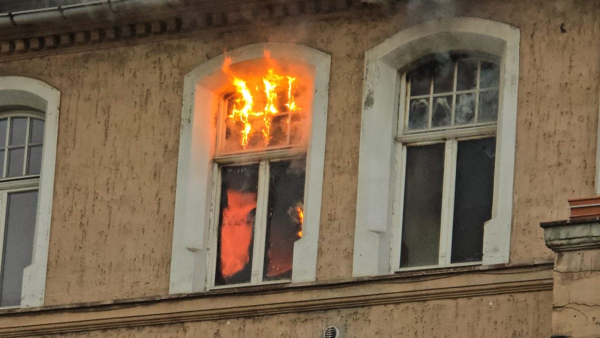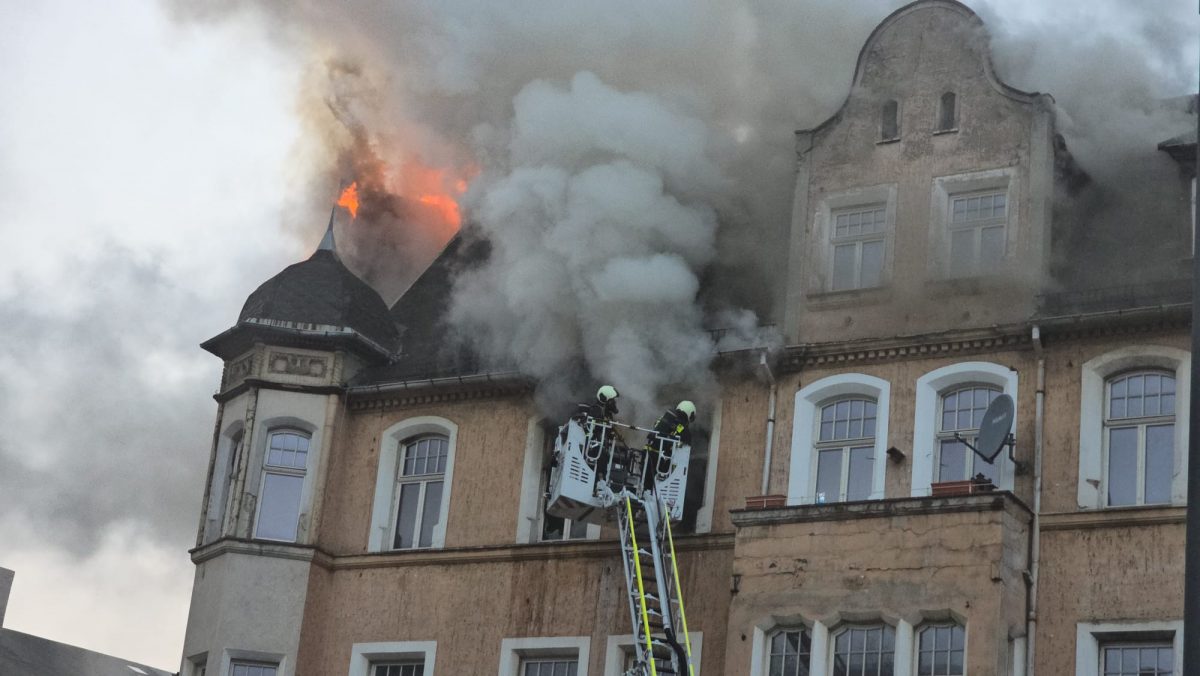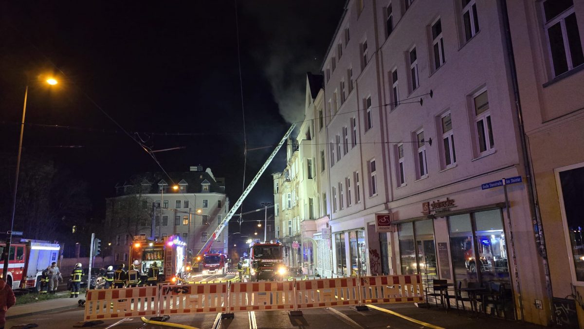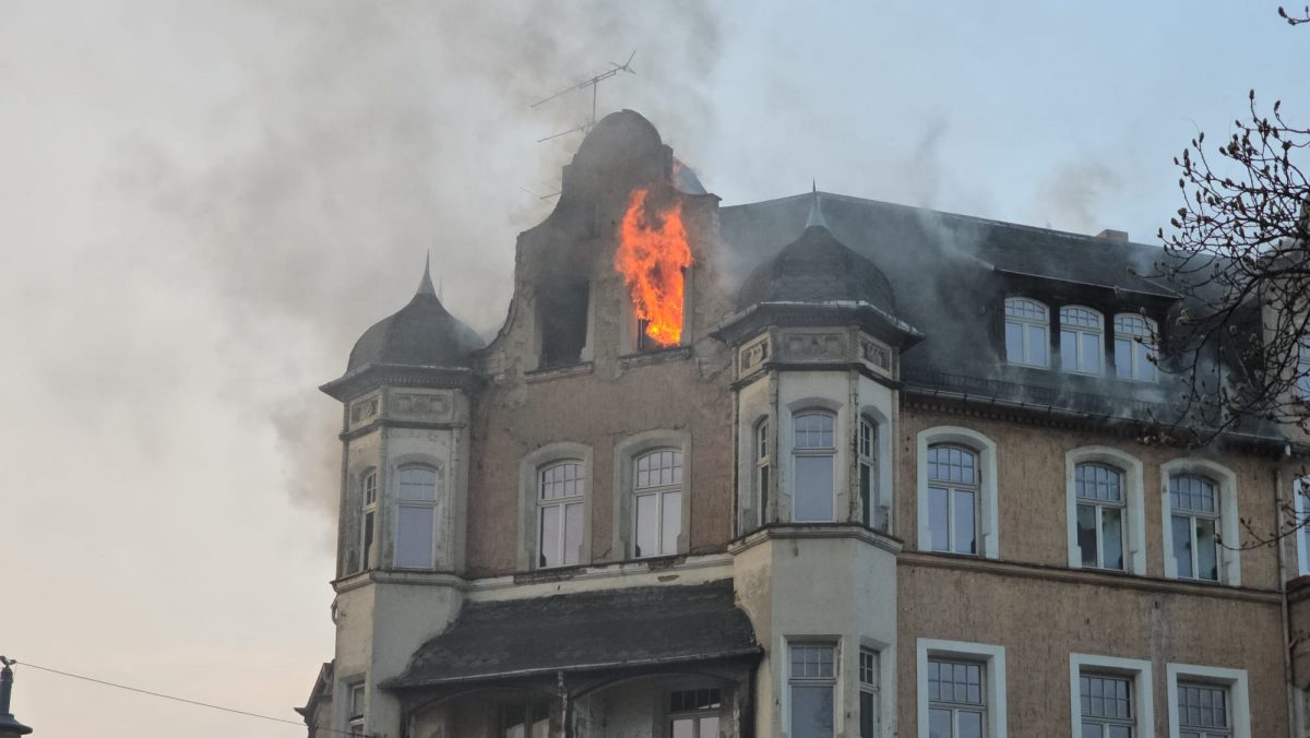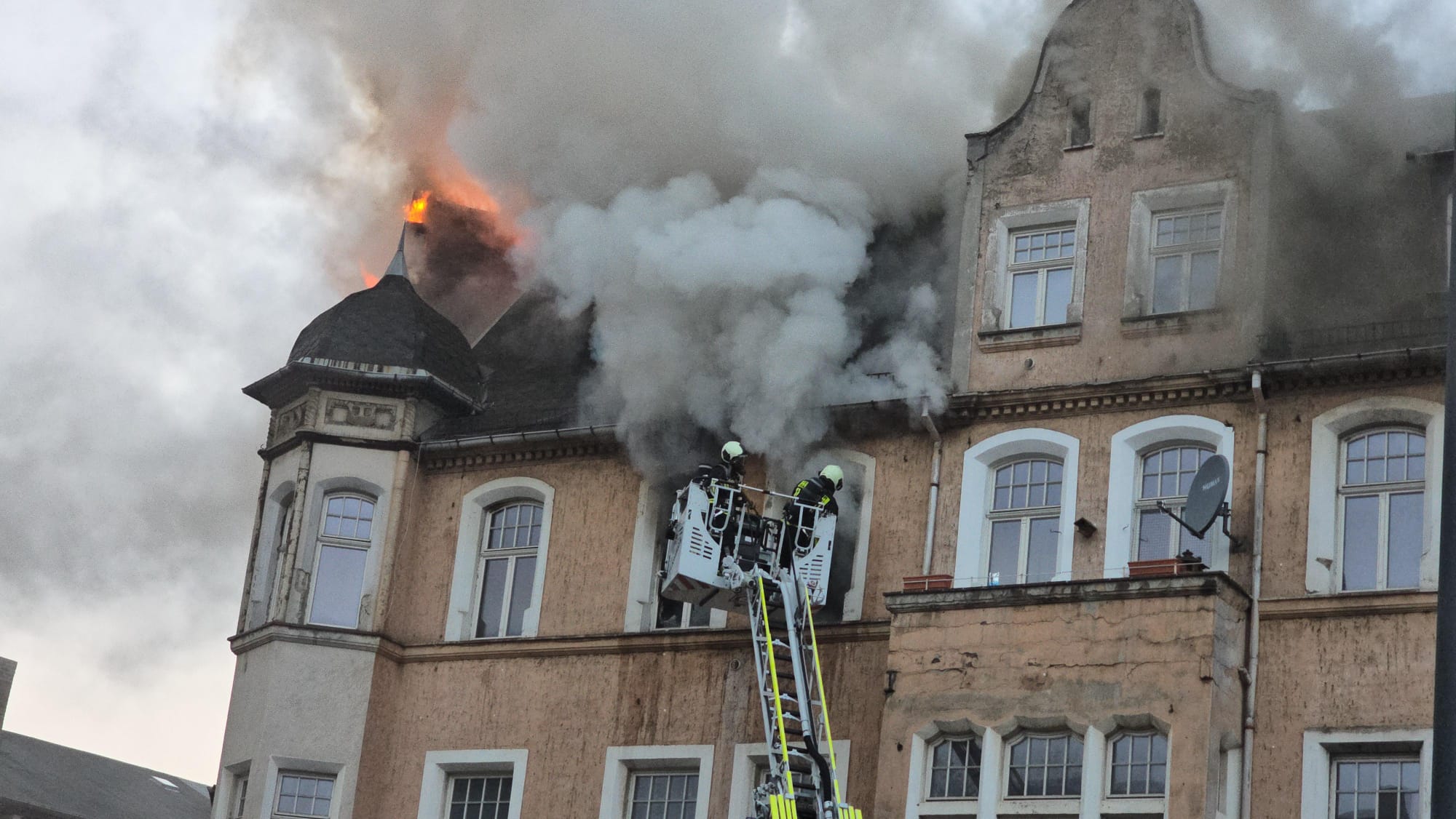 Gegen 18 Uhr am Dienstagabend drangen Rauchwolken aus einem Gebäude in der Großen Steinstraße Ecke Ludwig-Stur-Straße, Trümmerteile der Fassade und von zerborstenen Fensterscheiben stürzten nach unten.