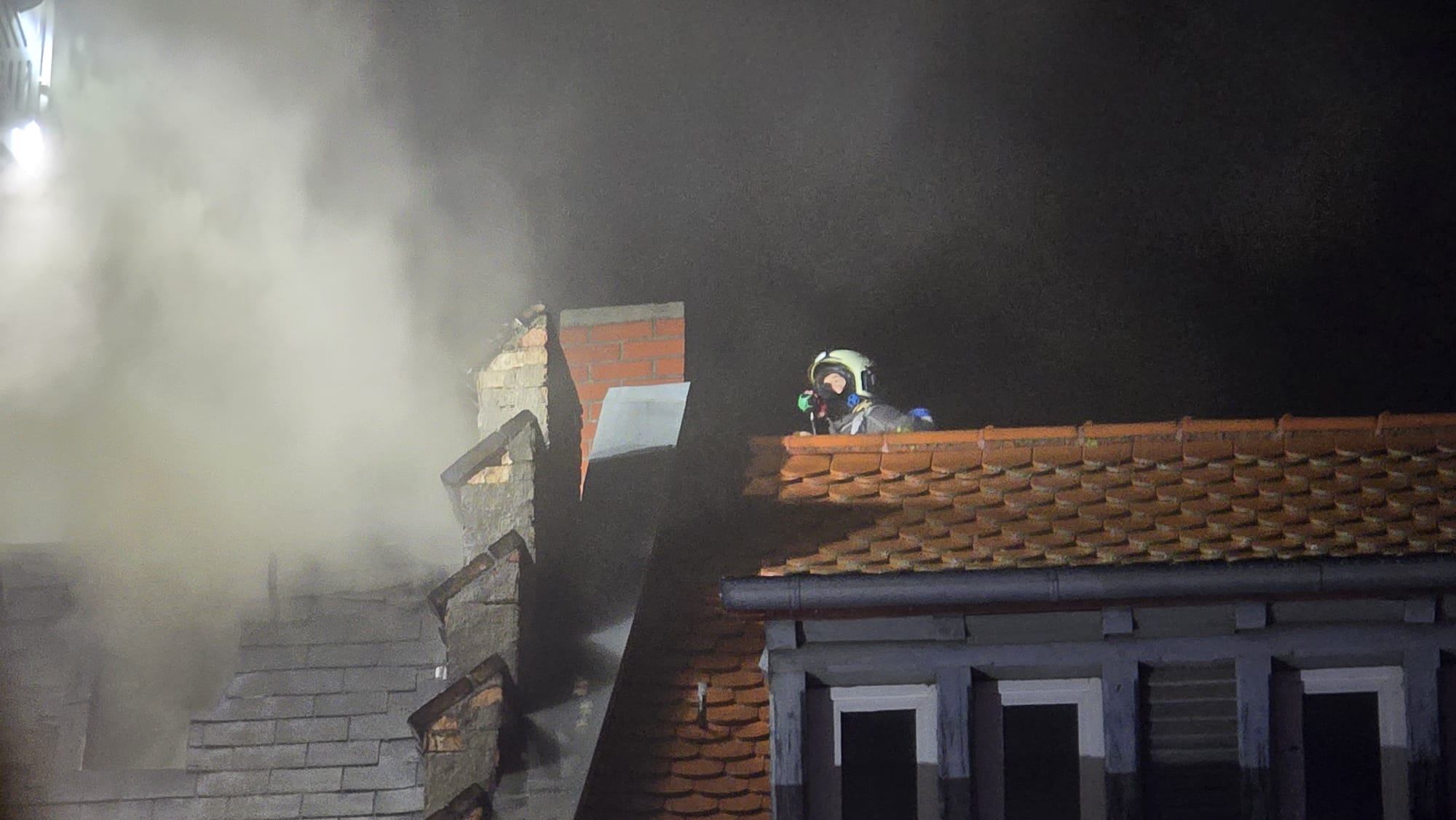 Immer wieder kam dabei auch die Kettensäge zum Einsatz, um das Dach aufzusägen. Gerade in der Nacht, wo alles ruhig ist, hörte man das Geräusch recht weit. Der Löscheinsatz dauerte die ganze Nacht an.