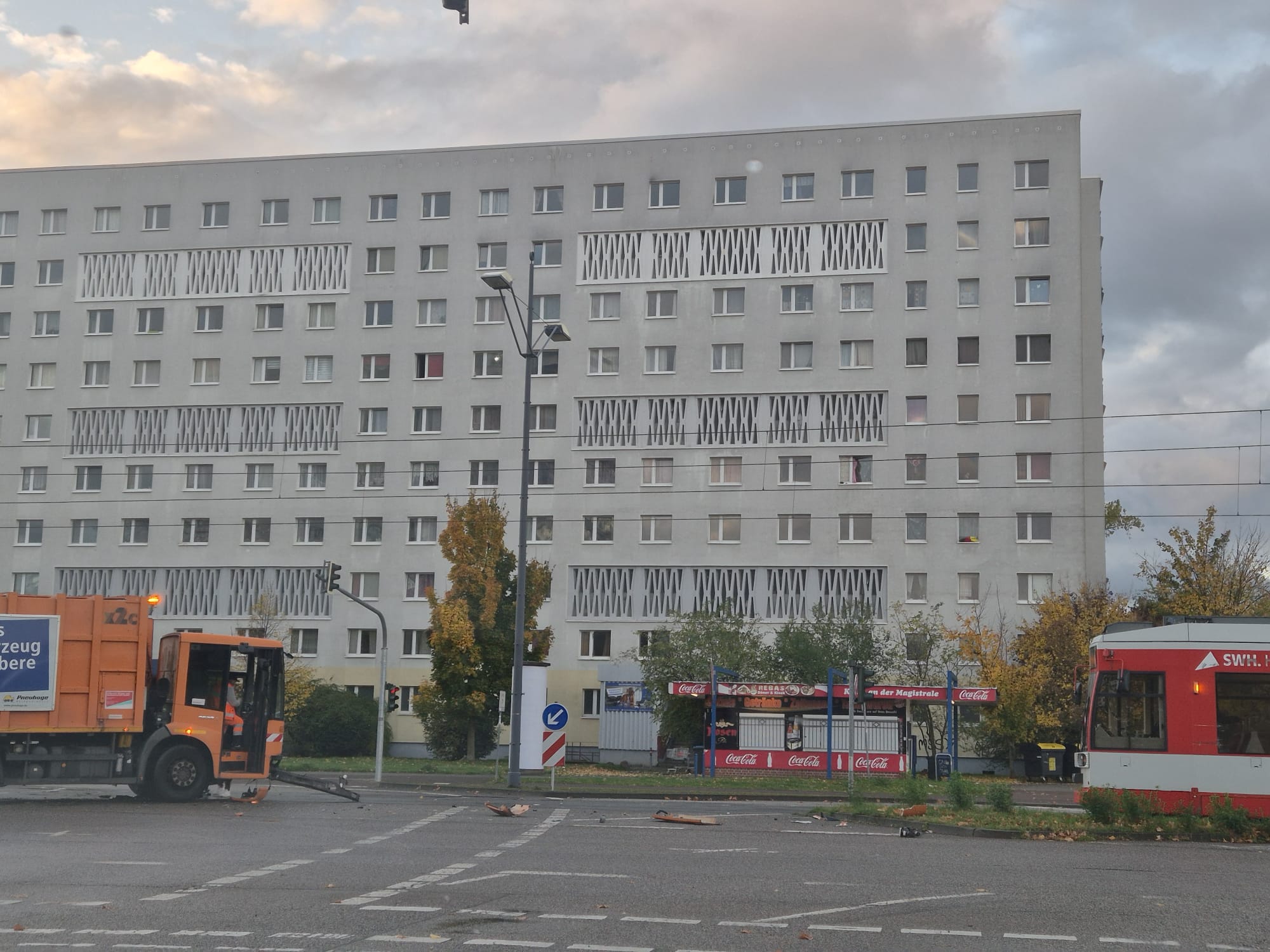 Am Donnerstagmorgen gegen 7.30 Uhr hat sich auf der Magistrale in Halle-Neustadt ein Verkehrsunfall ereignet. Hier sind an der Kreuzung Bruchsee eine Straßenbahn und ein Müllauto kollidiert. Eigentlich ist an der Kreuzung das Wenden verboten. Bis 10.20 Uhr war kein Straßenbahnverkehr nach Neustadt möglich.