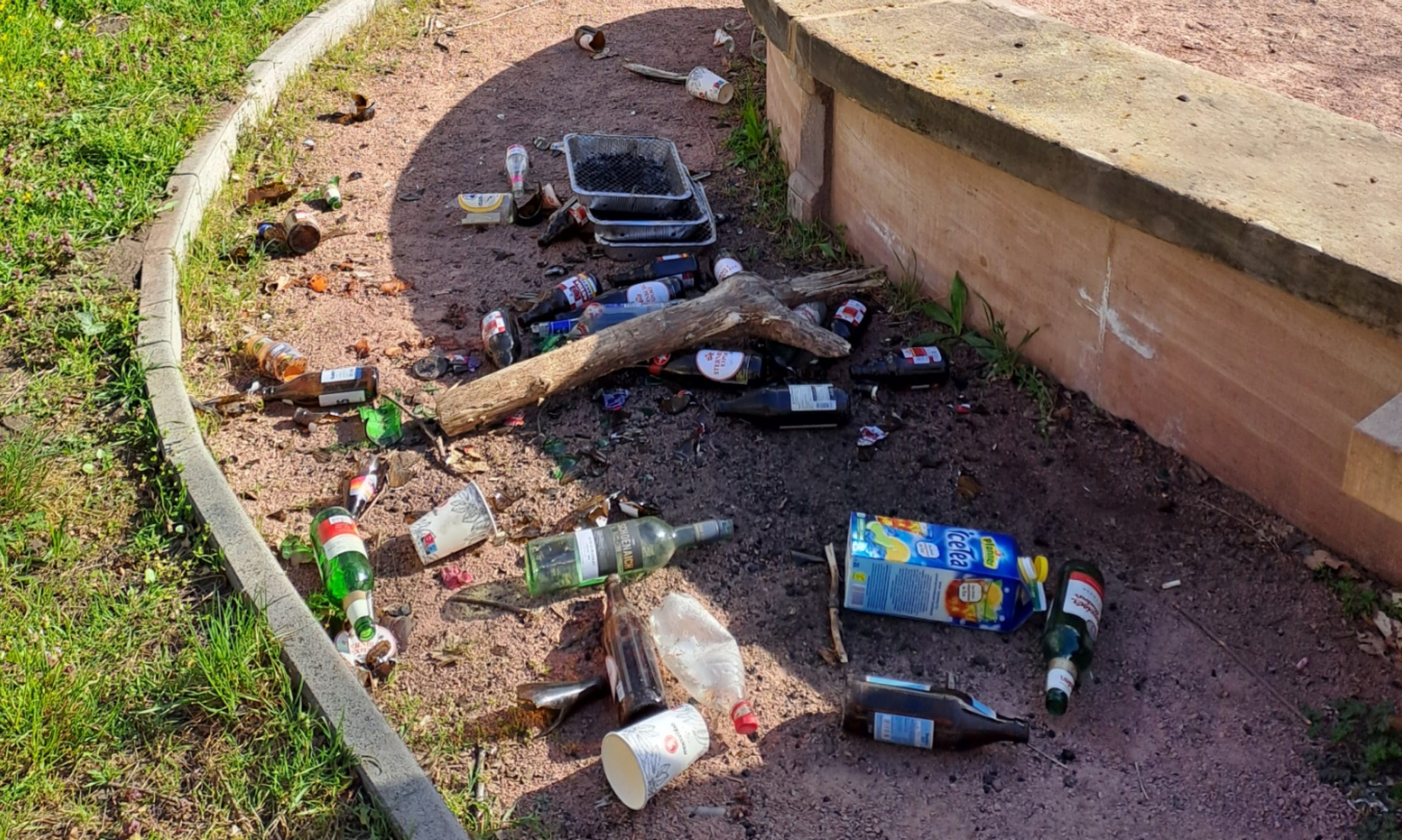 Das sind die Spuren unsere antiautoritär erzogenen Jugend. Dort oben wird seit Jahren in aller Ruhe gesoffen und Feuer gemacht, dagegen habe ich nichts, aber Müll muss wieder mitgenommen werden.