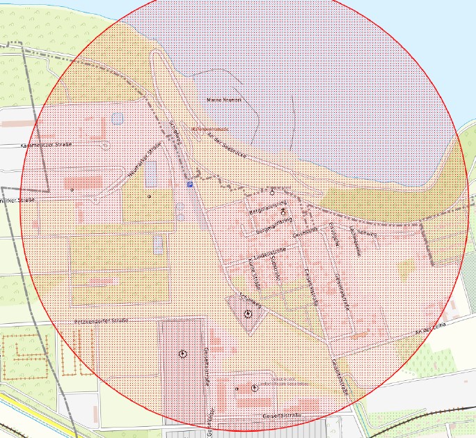 haben diesen Gefahrenbereich ab 08:00 Uhr zu verlassen. Die Sperrung des Bereiches beginnt um 10:00 Uhr und dauert voraussichtlich bis 16:00 Uhr an.