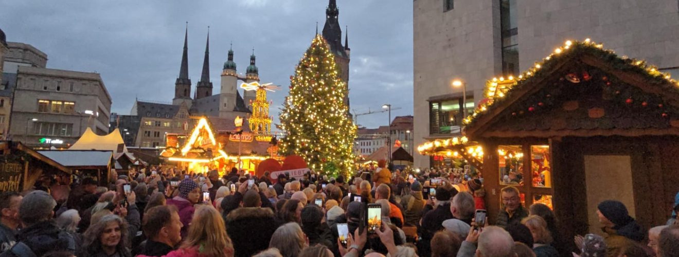 Voller Bestürzung hat die Stadt Halle (Saale) die Nachrichten vom Anschlag auf den Weihnachtsmarkt in Magdeburg am heutigen Freitag vernommen. „Wir Hallenserinnen und Hallenser sind in diesen Stunden bei den Opfern und den Freunden … Nach Terroranschlag auf Weihnachtsmarkt in Magdeburg: Halle verschärft Sicherheitsmaßnahmen und verzichtet auf Musik, Zufahrten werden gesondert gesichert weiterlesen