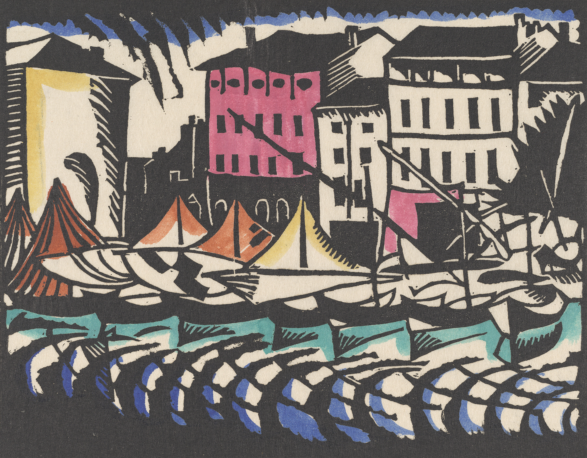 Richard Seewald: Martigues II, 1918, Holzschnitt auf Japanpapier, koloriert, 20,7 x 26,8 cm, Kulturstiftung Sachsen-Anhalt, Kunstmuseum Moritzburg Halle (Saale), Dauerleihgabe Michael von Busse, Nachlass Hans-Hasso von Veltheim, Inventar Nr. LGIIG00581, Repro: Eric Tschernow, Berlin © Fondazione Richard e Uli Seewald, Ascona