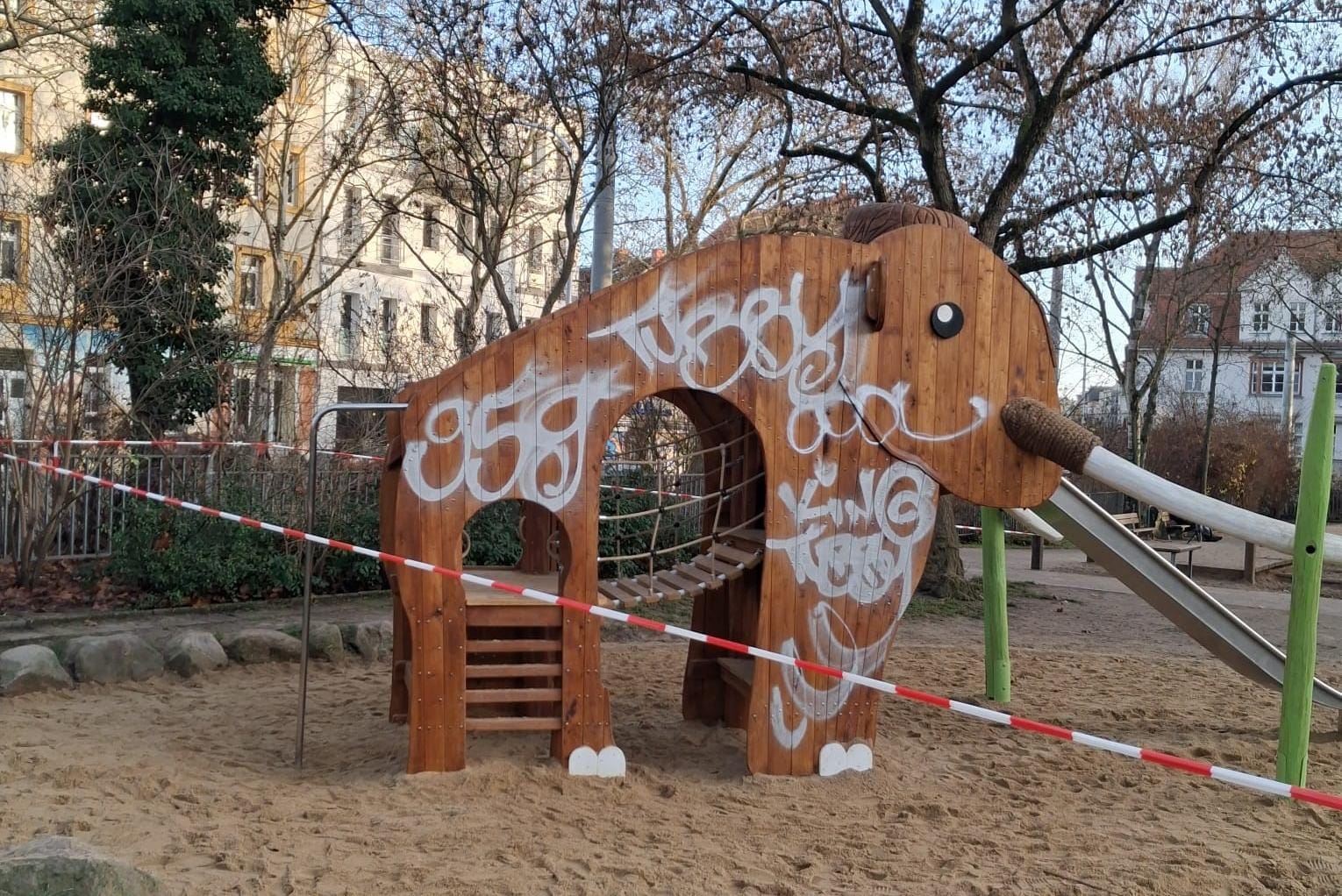 Neue Spielgerät am Landesmuseum schon beschmiert, Spielplatz wegen Glasbruch gesperrt