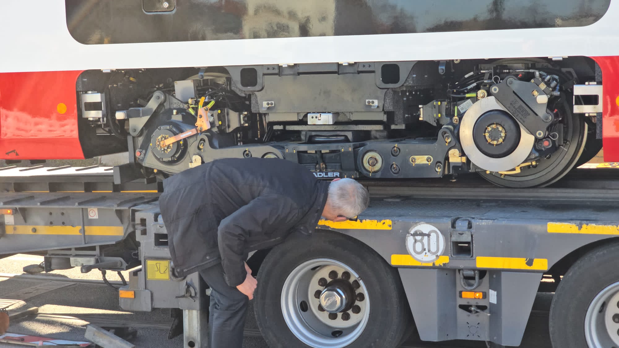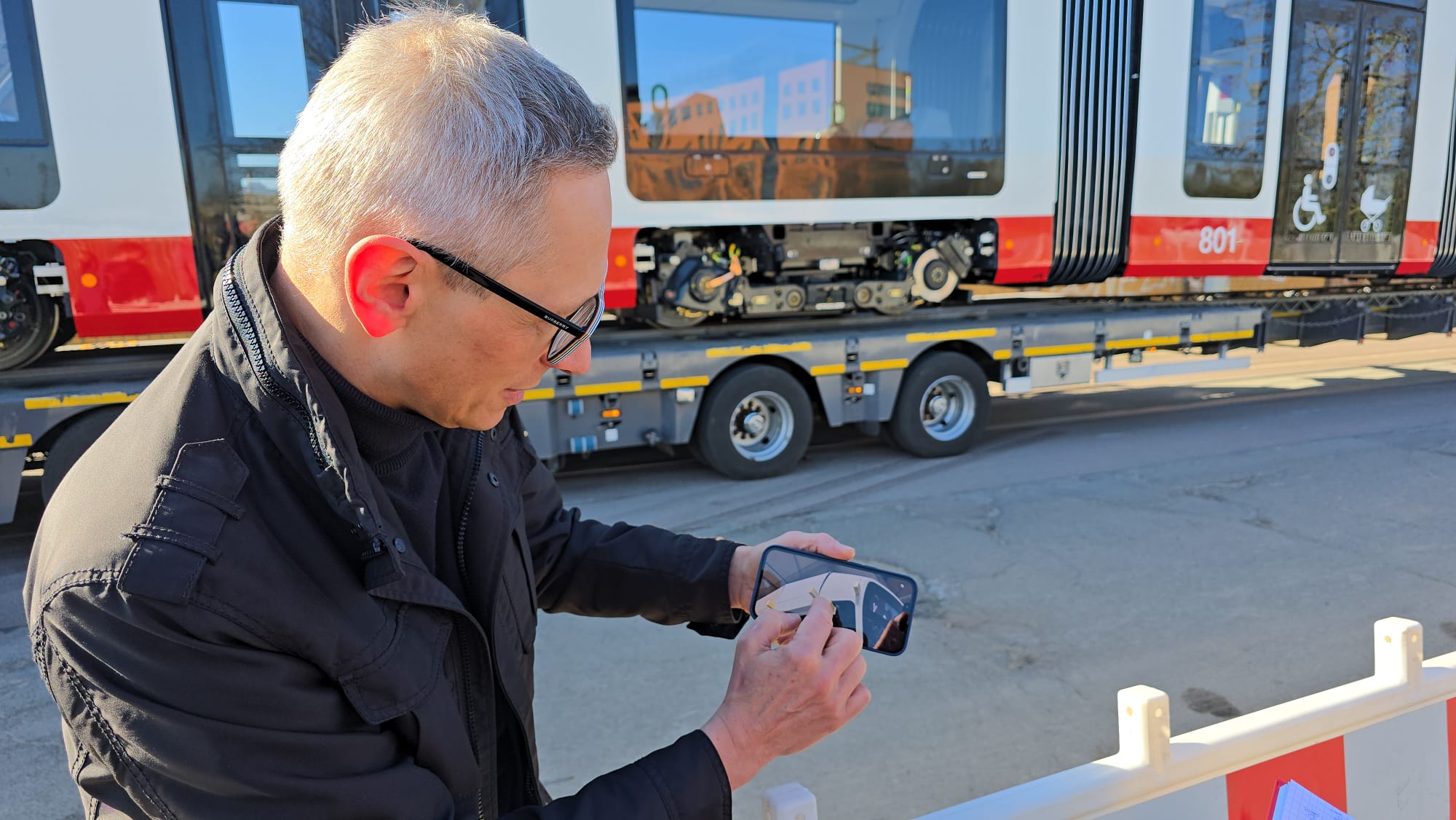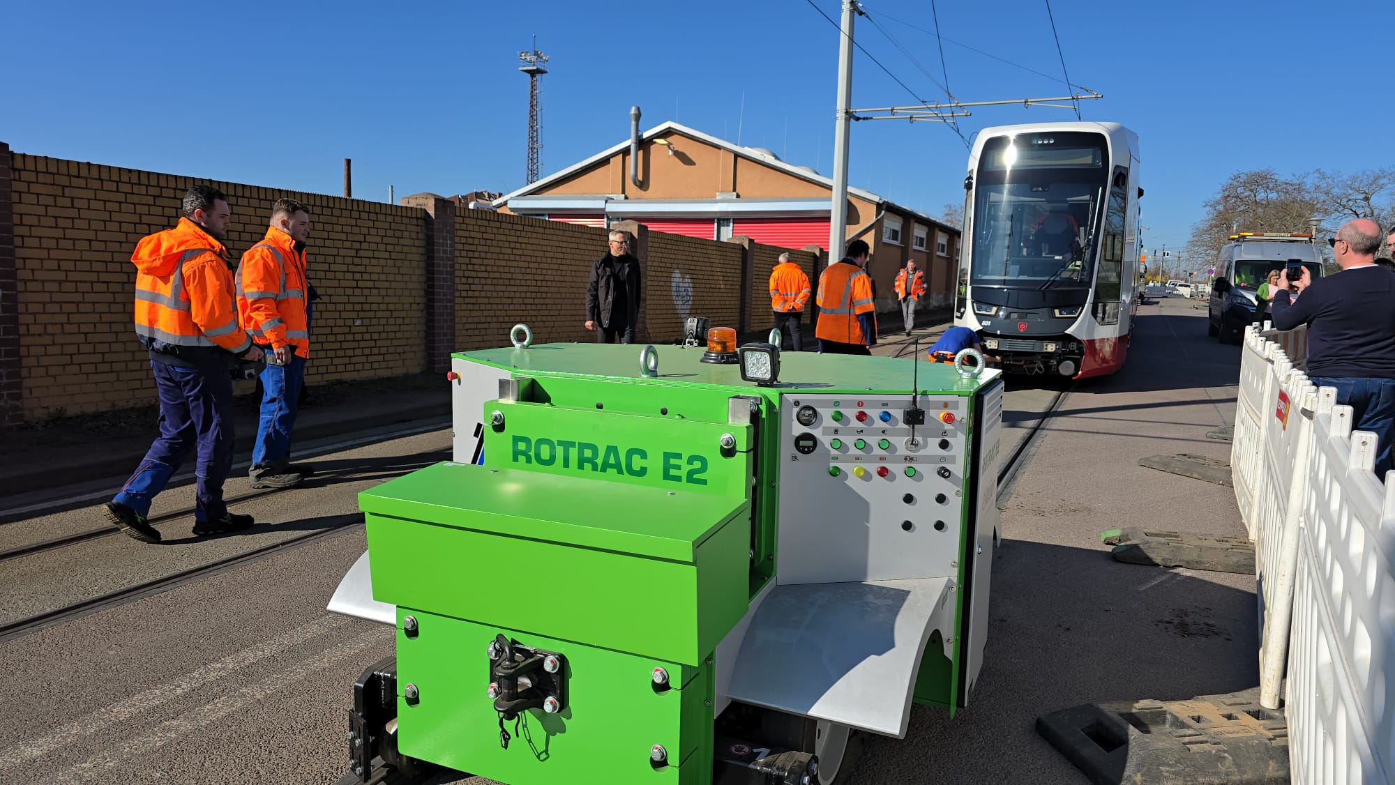 Die kurze Bahn ist aber nur eine Ausnahme. Die nächsten 14 Bahnen werden alle die XL-Variante mit 45 Metern Länge sein. “Wir wollen erstmal alle Langen da haben.” Die jetzige Kurbahn sei vor allem für die technischen Abnahmefahrten wichtig. Bevor die neuen Fahrzeuge in den Linieneinsatz mit Fahrgästen gehen, werden die Fahrzeuge einer sogenannten Typenprüfung unterzogen und es werden Streckenbefahrungen durchgeführt. Sowohl Fahrbedienstete, Werkstattmitarbeitende und auch Rettungskräfte werden für das Neufahrzeug TINA „fit“ gemacht und erhalten teilweise umfangreiche Schulungen. Dies umfasst die Bedienung, Behebung von Störungen, aber auch Wartung und Instandsetzung. Die Fahrbediensteten werden durch die HAVAG-Fahrschule geschult und eingewiesen. Dies umfasst die Bedienung des Fahrzeugs, das Erkennen von Störungen und Fehlern sowie deren Behebung. Bei erfolgreichem Abschluss dürfen die Fahrbediensteten dann die TINA-Fahrzeuge fahren. Chefausbilder Thomas Lipski und Werkstattleiter Sören Jandt saßen laut Schwarz bereits am Steuer, zudem die Stadler-Mitarbeiter, die derzeit ständig vor Ort sind.