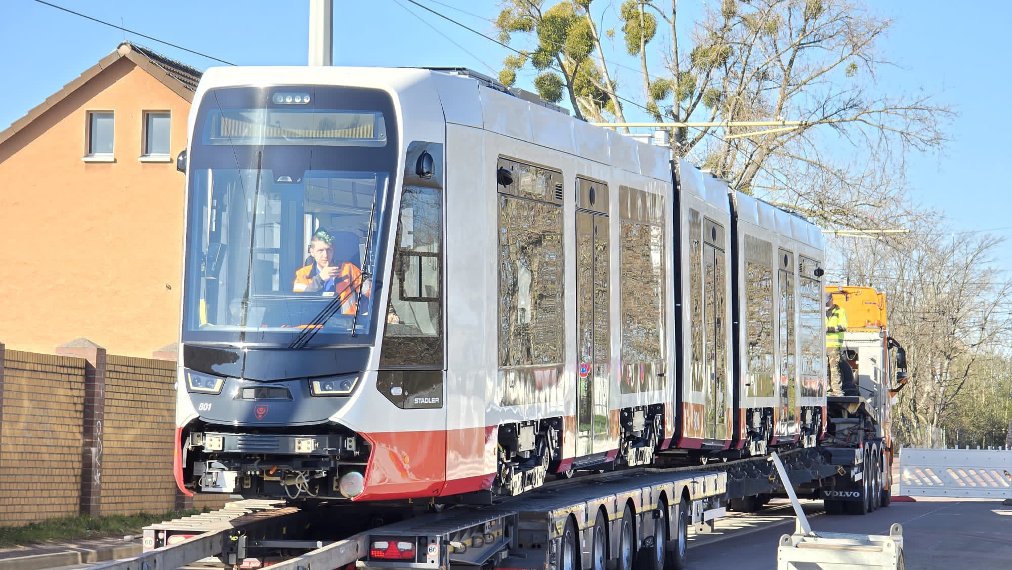 Neue TINA-Straßenbahn angekommen – die nächsten kommen im Oktober – am 10. Mai ist Tag der offenen Tür im Betriebshof mit Blick in die neue Tram