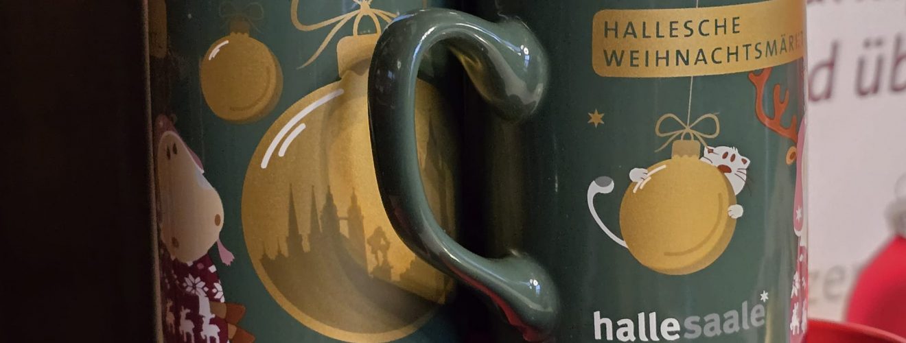 Neue Weihnachtsmarkt-Tassen dieses Jahr in “British Racing Green”: 26.000 Exemplare