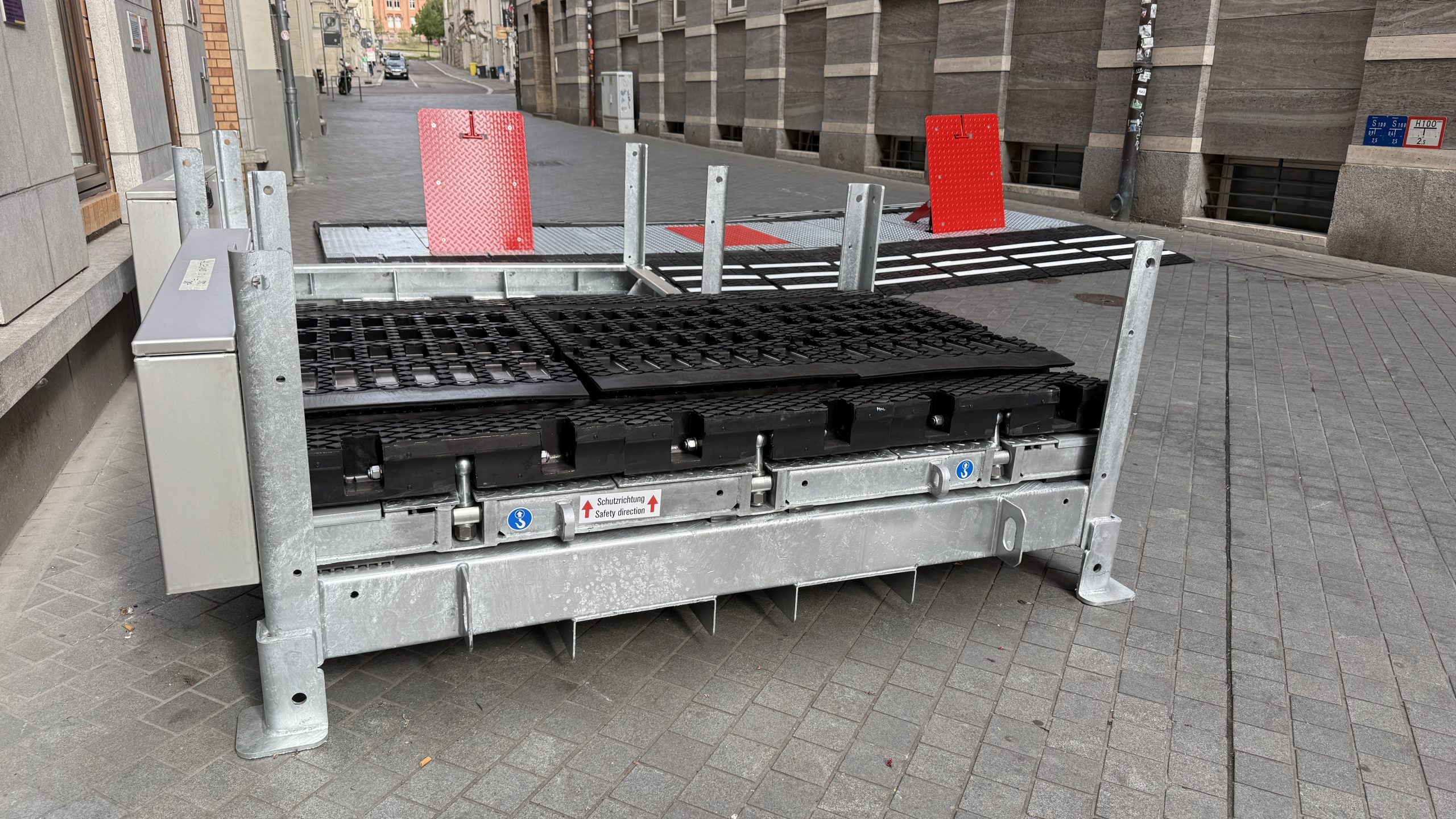 Erstmalig eingesetzt wird das System bei der morgen stattfindenden Lidl Deutschlandtour. Und schon zum Laternenfest am kommenden Wochenende sind die Sperren erneut im Einsatz.
