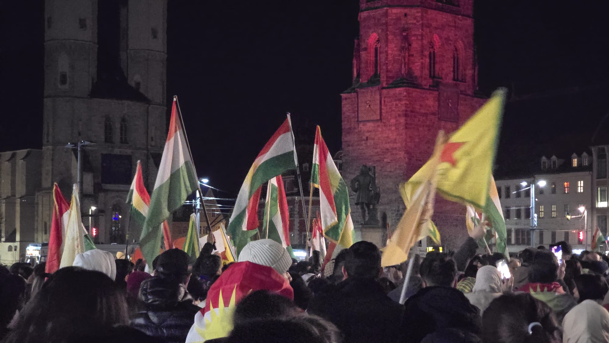 Am Dienstagabend gab es auf dem Marktplatz in Halle (Saale) eine Demonstration von Kurden. Etwa 500 Menschen beteiligten sich nach Angaben der Polizei daran. Zwischenfälle gab es nicht.