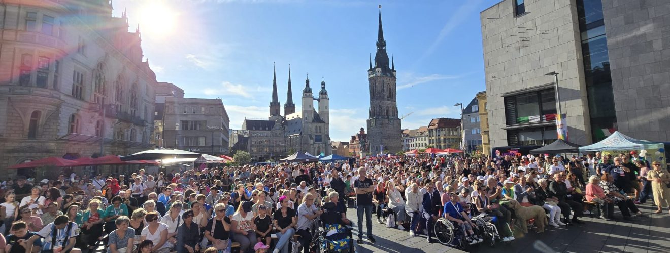 Strahlender Sonnenschein, eine feierliche Atmosphäre und hunderte jubelnde Menschen auf dem halleschen Marktplatz: Am Sonntagnachmittag wurde dort mit einem emotionalen Festakt die Special Olympics Landesspiele Sachsen-Anhalt eröffnet. Mit dabei: rund 800 Athletinnen und Athleten … Olympischer Geist auf dem Marktplatz in Halle: Special Olympics Landesspiele mit Fackel, Musik und bewegenden Worten eröffnet – mit Video weiterlesen