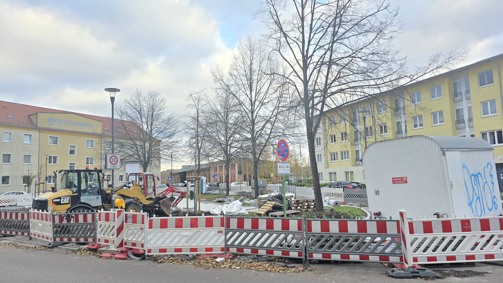 Der Auftragnehmer habe mitgeteilt, dass sich die Lieferung des Materials für die Wege- und Bodengestaltung verzögert, so die Stadtverwaltung. “Nach Abstimmung zwischen Stadt und Auftragnehmer sollen die Arbeiten bis voraussichtlich Weihnachten abgeschlossen werden.”