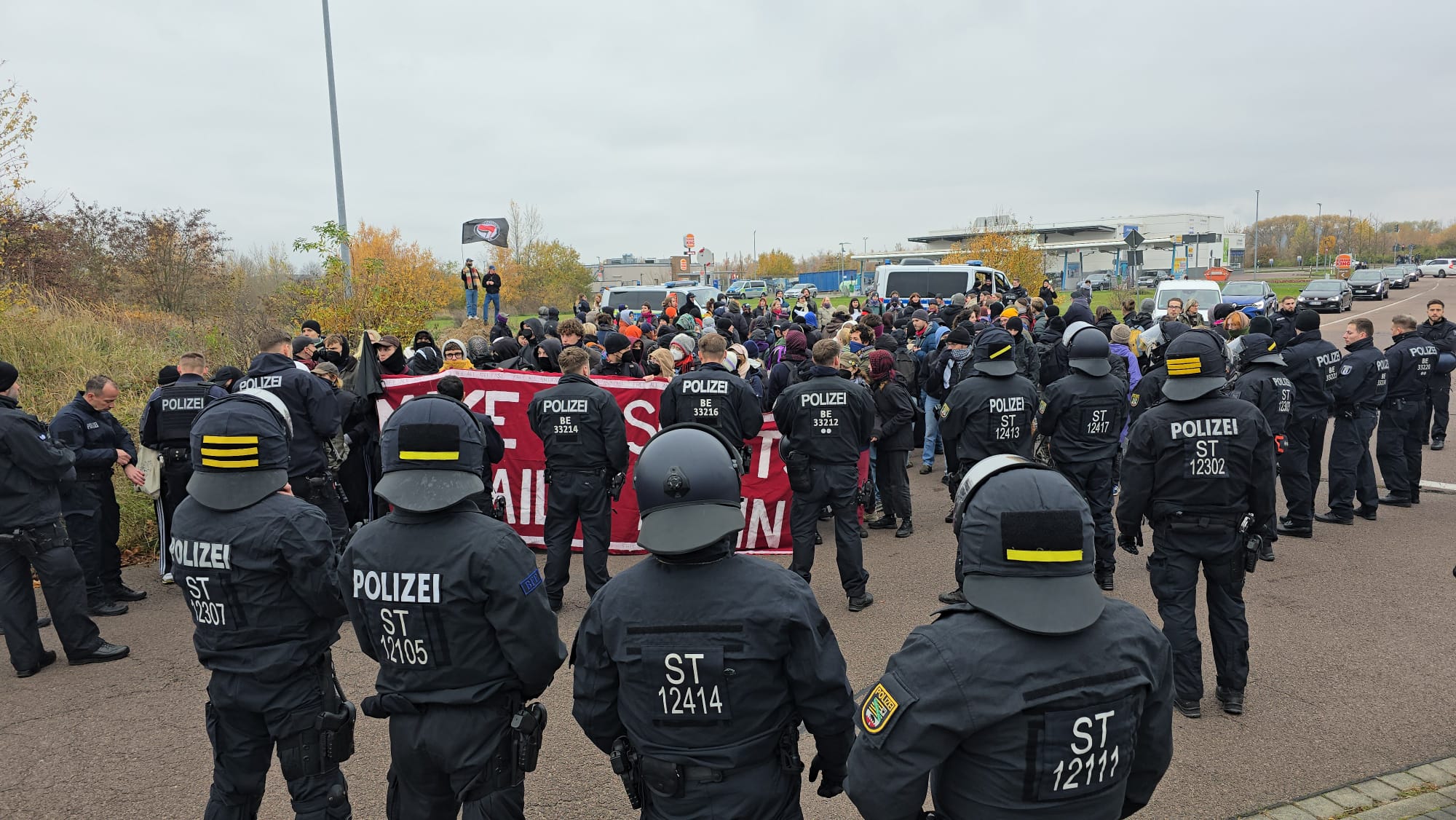 Die Polizei war am 8.11.2025 mit ca. 350 Kräften im Einsatz. Unter anderem wurde die Polizeiinspektion Halle (Saale) durch Einsatzkräfte der Polizei Berlin unterstützt.