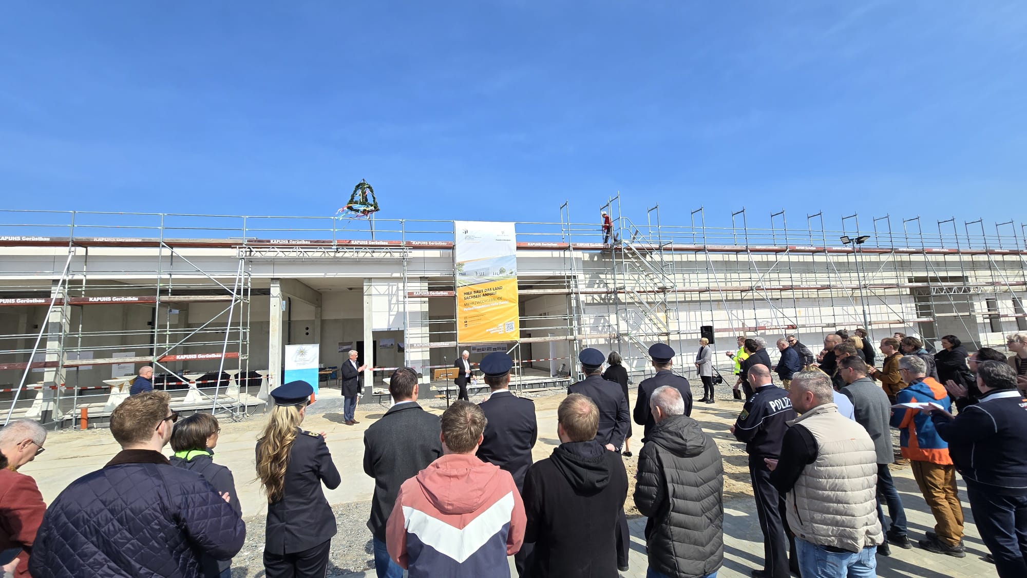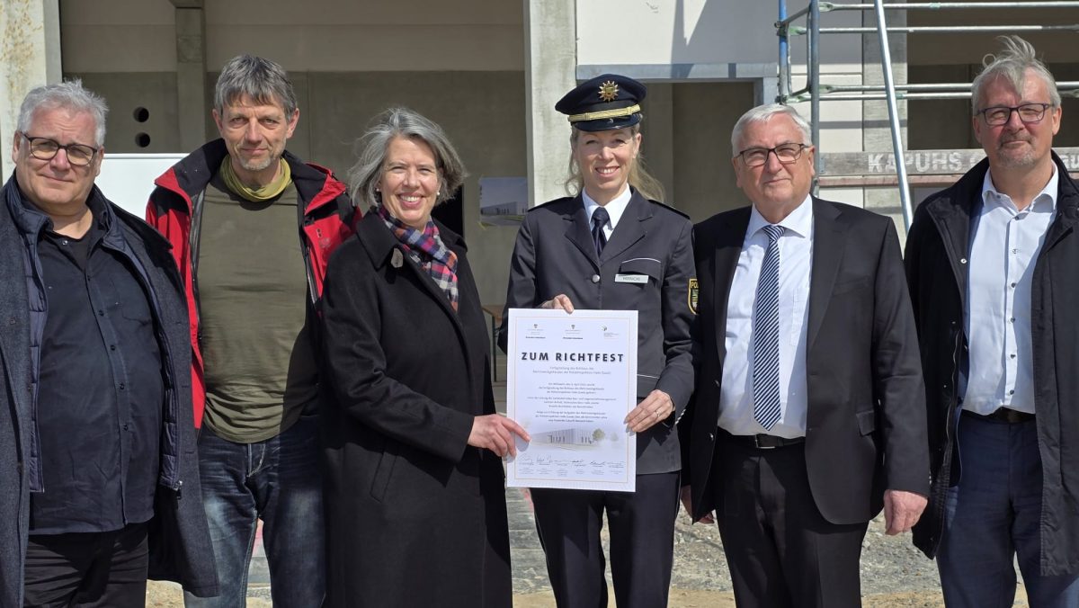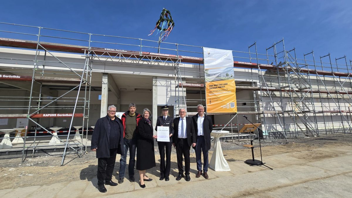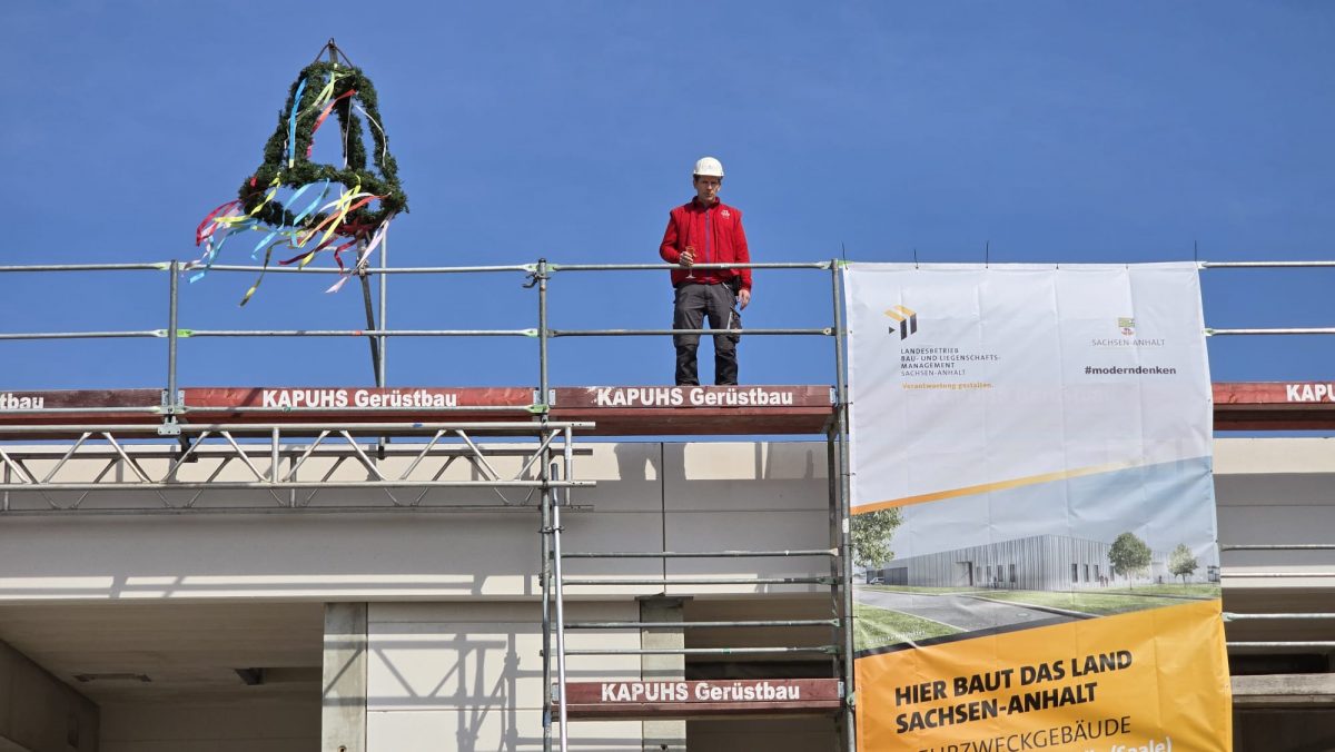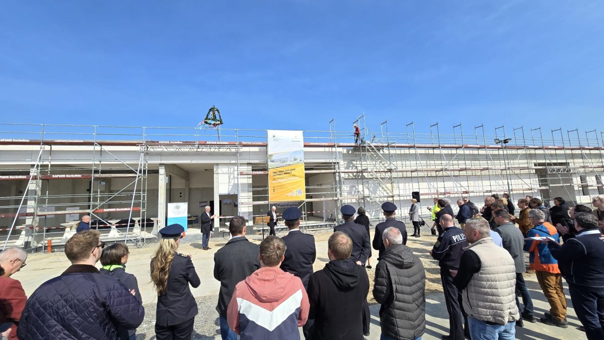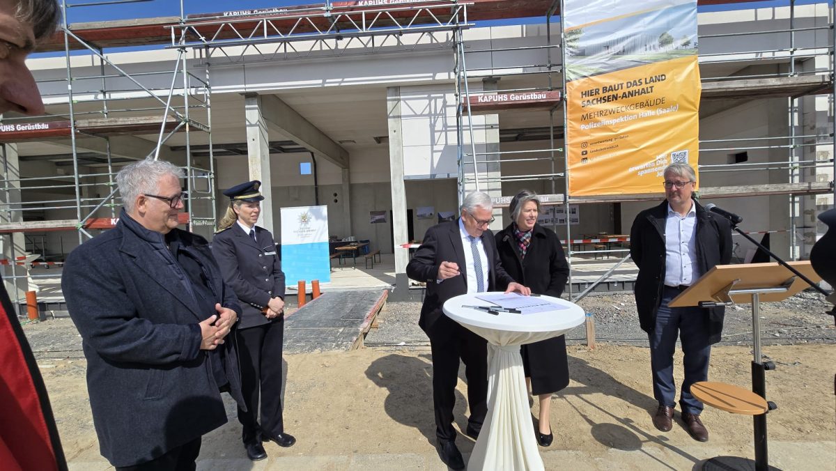 Asservatenkammer, Schießanlage, Krafträume: Richtfest für Polizeineubau in der Frohen Zukunft in Halle (Saale)
