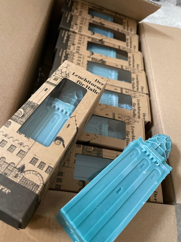 – Neu im Sortiment: Spardosen in Form des Stadtbadturms, 3D-gedruckt und als charmantes Zeichen für Unterstützung und Zukunft.