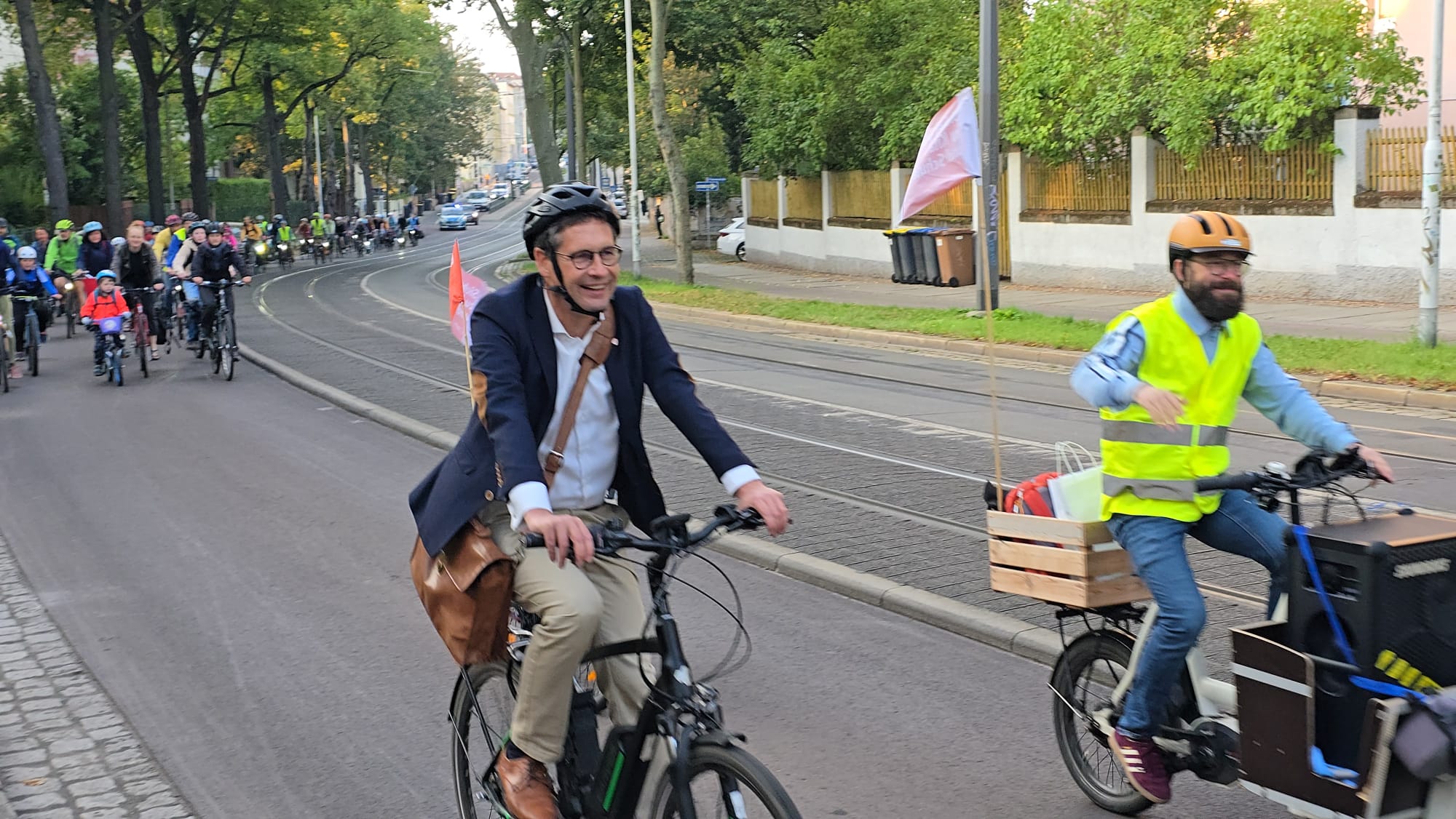 Radeln statt Elterntaxi: Fahrradbus in Halle wird drei Jahre alt – Schüler übergeben klare Forderungen an mitradelnden Oberbürgermeister Vogt, der berichtet von 500 Millionen Euro Investitionsstau