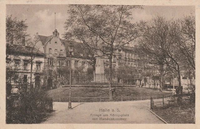 Auf http://geodienste.halle.de/halgis/ gibt es historische Karten von Halle (kann man leider nicht direkt verlinken). Eine Bildersuche im Internet nach „Königsplatz Halle (Saale)“ bringt diverse historische Postkartenmotive zum Vorschein, wie z. B. dieses hier: