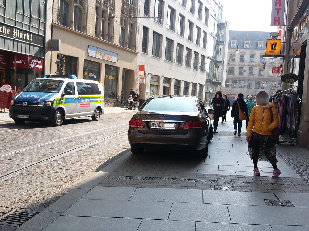 „in der halleschen Innenstadt in Ruhe leben, einkaufen und spazieren gehen?“, eine Sache die bis jetzt mit Ausnahme von Corona seit Jahrzehnten wunderbar ging.