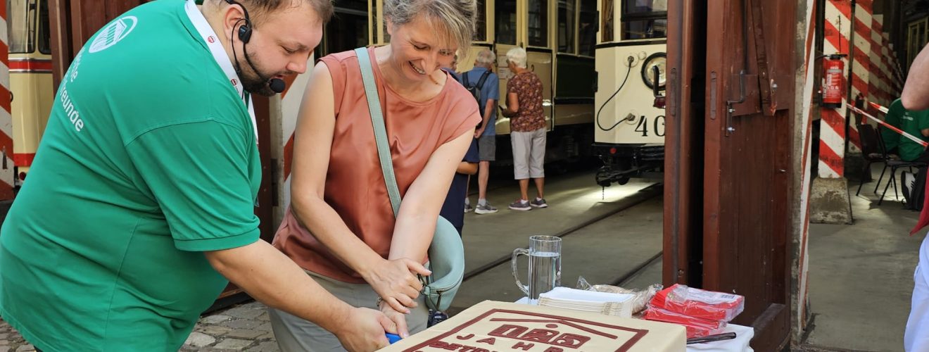 Schokocreme-Torte zum 125. Geburtstag des Straßenbahndepots in der Seebener Straße