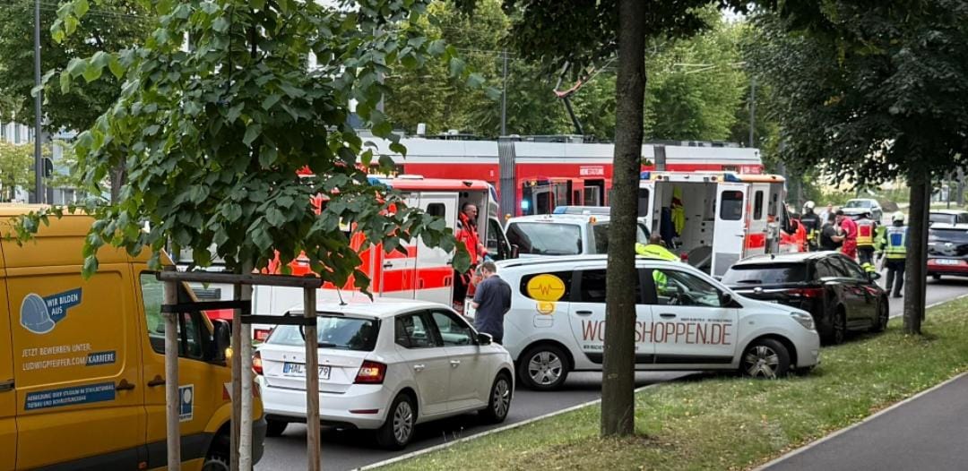 Schwerer Verkehrsunfall in der Merseburger Straße: Mann springt vor Straßenbahn und wird schwerstverletzt