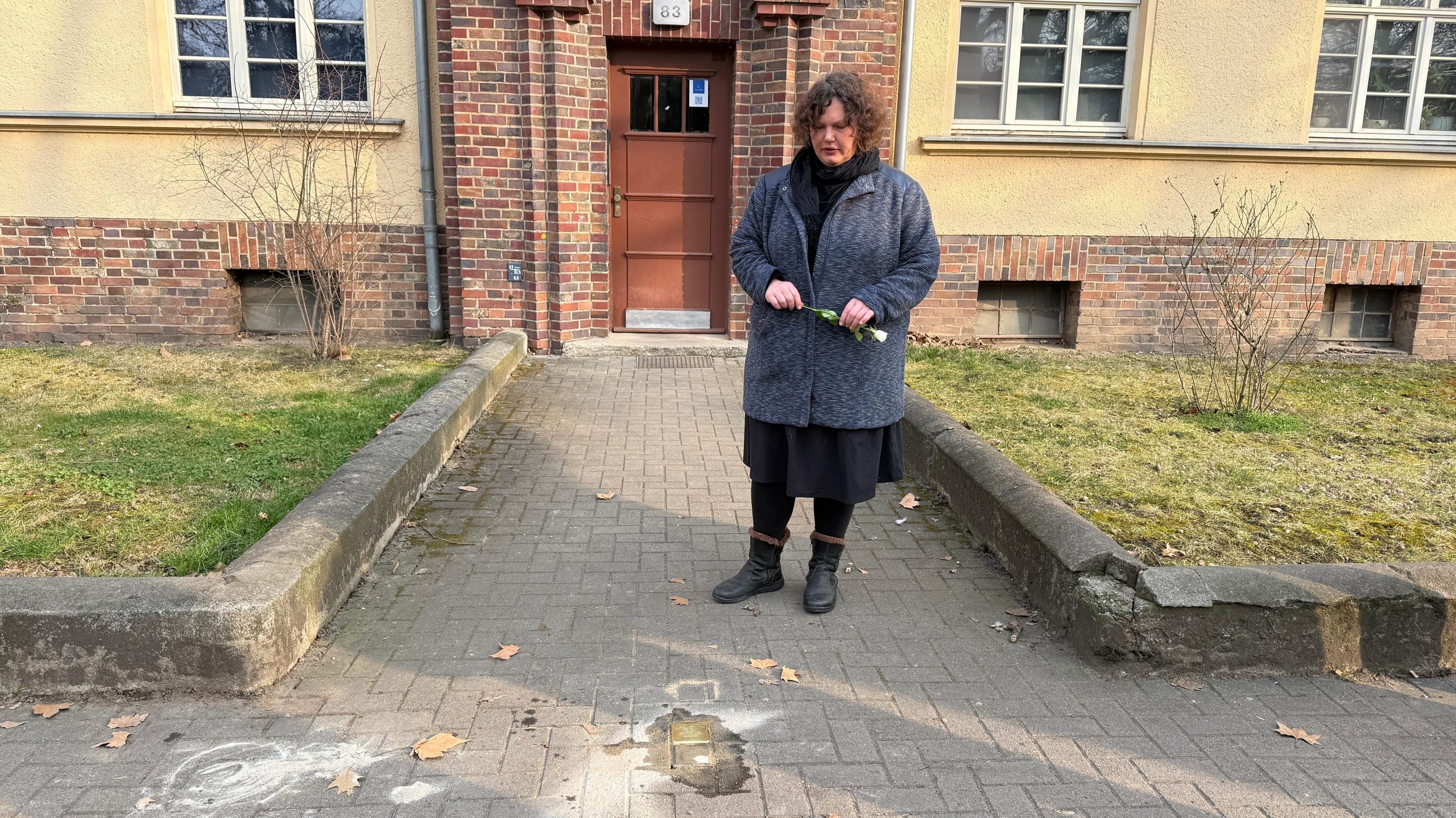 In der Huttenstraße wird an die Jüdin Darga Brynyck, geb. Lewin, erinnert. Es ist der erste Stein in der Straße. Darga Brynych kam um 1920 mit ihrer Familie aus Westpreußen nach Nietleben. Dort betrieben sie ein Geschäft. “Es war nach unserem Wissen dort die einzige jüdische Familie”, berichtete Anne Kupke Neidhardt vom Zeitgeschichte(n)-Verein. Die Ehe mit ihrem nichtjüdischen Mann Franz Brynych bot ihr zunächst Schutz vor der Deportation. Als ihr Mann im Januar 1944 nach schwerer Krankheit starb, wurde sie nur sechs Wochen später abgeholt und deportiert. Wohin sie gebracht wurde ist unbekannt. Sie überlebte den Holocaust nicht. Nachfahren der Familie leben noch in Deutschland und San Diego. Dadurch konnte beispielsweise in Erfahrung gebracht werden, dass durch die Familie Kartoffeln und Tomaten im damals noch umzäunten Vorgarten angebaut worden sind.