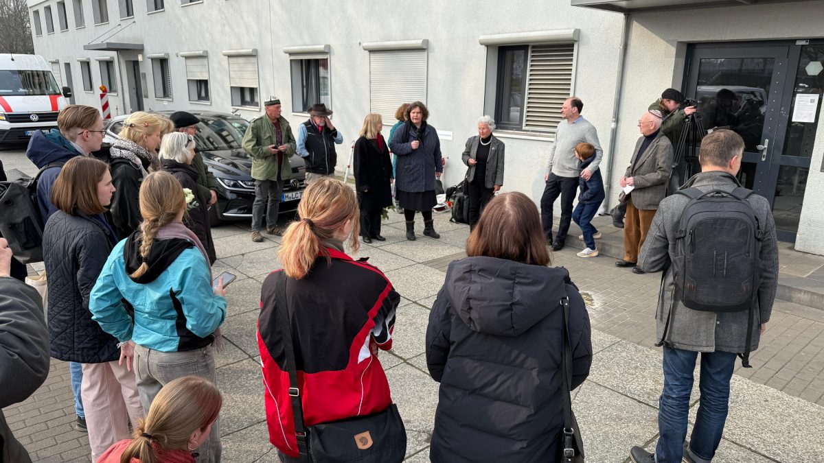 “Für uns ist extrem wichtig, dass sich die nächste Generation damit beschäftigt, was hier passiert ist”, sagte Halles Kulturdezernentin Judith Marquardt, “damit jeder weiß, was hier passiert ist und wie man es für die Zukunft verhindern kann.” Der Sohn des mittlerweile verstorbenen Hans Mendel sagte, “das ist ein besonderer Tag für unsere Familiengeschichte.” Er war mit Frau, Sohn und Enkelkindern da. Nach der Verlegung haben sie noch die Stadt Halle erkundet. Schülerinnen des Elisabeth-Gymnasium trugen Gedichte zum Thema Holocaust und Auschwitz vor, die sie selbst formuliert hatten. Auschwitz sei ein “Ort, der schweigt, aber alles sagt.” Konzentrationslager seien keine bloßen Orte, “sondern eine Mahnung, was passiert, wenn Menschlichkeit verloren geht.” Und wie wichtig das Erinnern ist, zeigte sich prompt im Rahmen der kleinen Gedenkfeierlichkeit. Genervt davon fühle sich offenbar der Mitarbeiter einer in dem Gebäude ansässigen Dienstleistungsagentur. “Wird mal Zeit, dass das hier aufgelöst wird”, sagte er ungehalten. Er warte hier jetzt schon zehn Minuten.