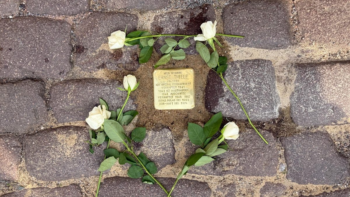 Am Kirchtor wurde ein Stolperstein für Ernst Thiele verlegt. Eine ganz besondere Geschichte. Thiele gehört zur Gruppe der Verleugneten, wie Anne Kupke-Neidhardt berichtete, es ist der erste Gedenkstein dieser Art in Halle. Thiele wurde 1908 in Halle-Trotha geboren. Er stammte aus einfachen Verhältnissen und übte verschiedene berufliche Tätigkeiten aus. Immer wieder geriet er wegen kleinerer Vergehen mit dem Gesetz in Konflikt und wurde 1941 zu drei Jahren Zuchthaus mit anschließender Sicherheitsverwahrung verurteilt. Während des Nationalsozialismus wurden Vergehen wie die Thieles härter als zuvor geahndet, er galt nun als „gefährlicher Gewohnheitsverbrecher“ und wurde zur Arbeit in das Konzentrationslager Mauthausen, später nach Auschwitz-Monowitz gebracht, wo er Häftling war und keine Position inne hatte. Thiele überlebte die Lager, wurde jedoch kurz nach der Befreiung, am 15. Mai 1945, erneut festgesetzt und in die Sowjetunion gebracht. Ein Sowjetisches Militärgericht verurteilte ihn 1949 zu 25 Jahren Arbeitsbesserungslager. Vorgeworfen wurde ihm die Beteiligung an Massenverbrechen während des Nationalsozialismus während seiner Zeit als Häftling in Auschwitz. Einen rechtstaatlichen Prozess gab es nie, seine Schuld wurde auch nicht überprüft. 1955 wurde Thiele in die DDR-Haft überstellt, wo er weiter seine Unschuld beteuerte. 1974 wurde Thiele in die Freiheit entlassen. Mehrere tatsächliche Täter, die mit Thiele in sowjetischer Haft waren, sind zu diesem Zeitpunkt schon längst in Freiheit. Nach seiner Haftentlassung zog er zu seiner Schwester in einer Wohnung Am Kirchtor.